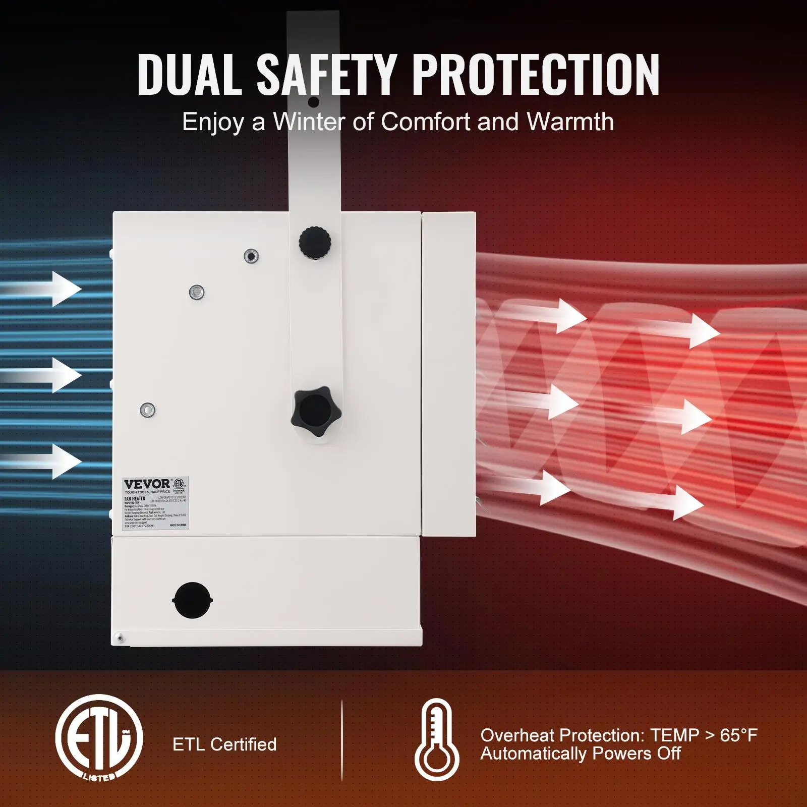 • Wall/Hanging Installation: We offer both wall-mounted and hanging installations, max. indoor space utilization for your garage or workspace. In addition to flexible installation, the heater also features an automatic fan delay function for efficient heat transfer and energy savings.