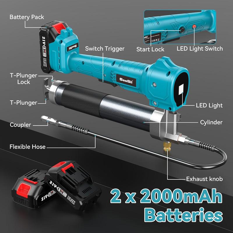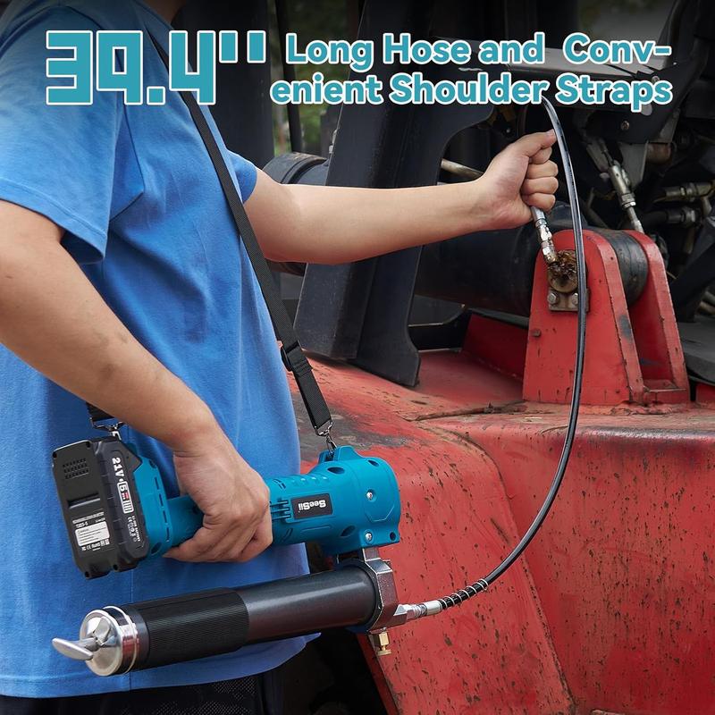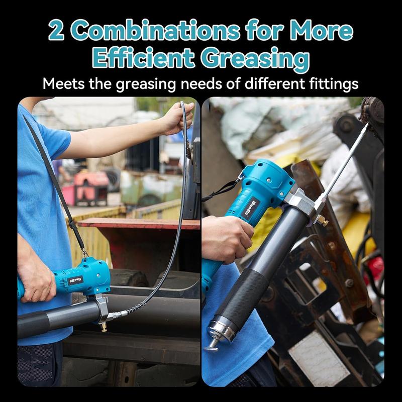 10,000 PSI industrial-grade motor delivers 4.2 oz/min flow rate for heavy-duty lubrication - 3X more powerful than standard grease machine. Effortlessly handles Class 8 truck kingpins, combine harvester joints, and excavator pivot points.