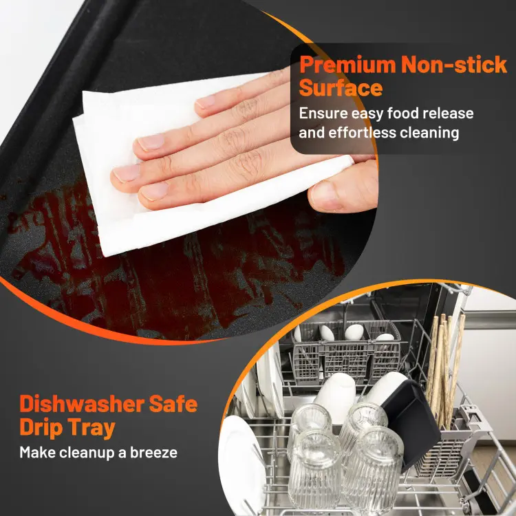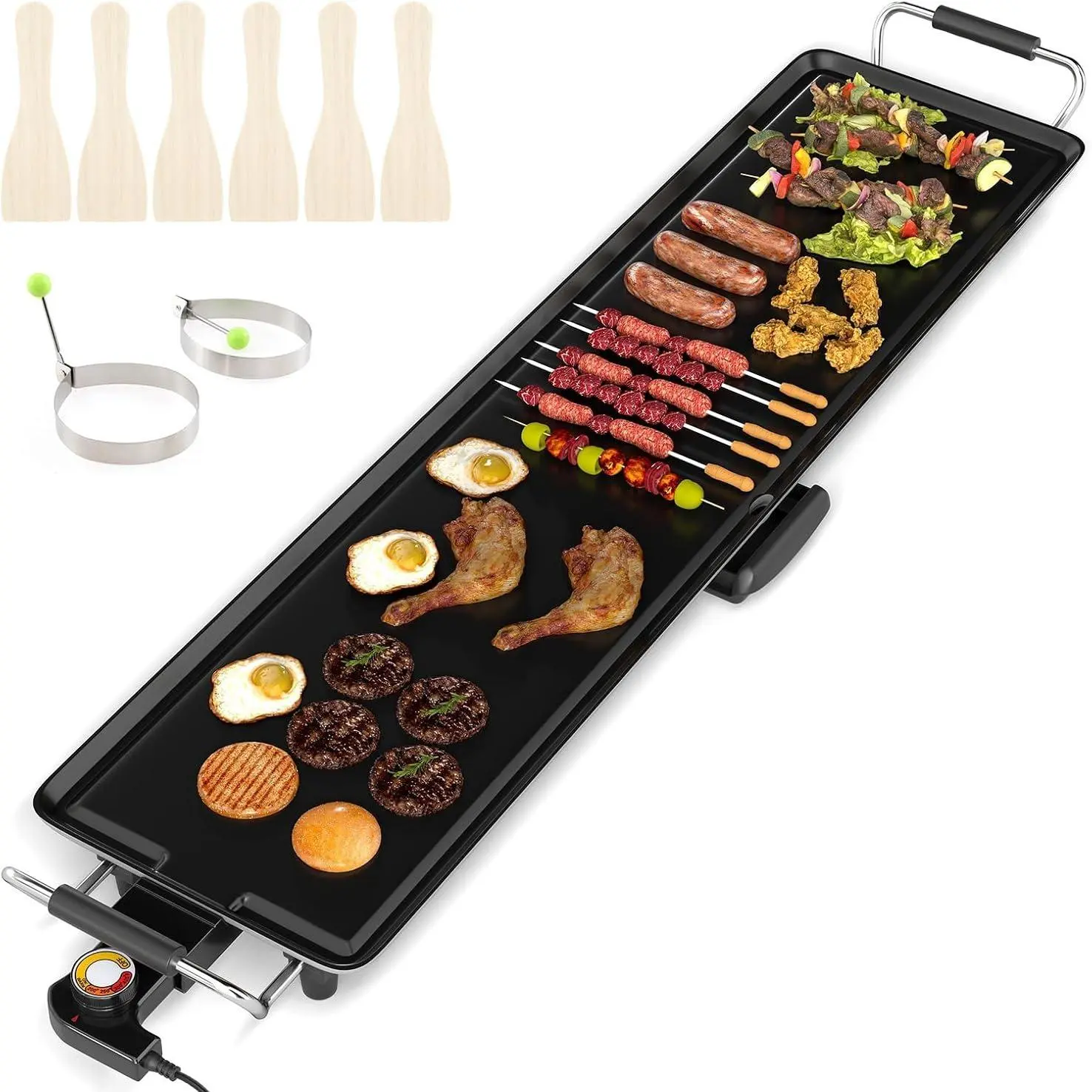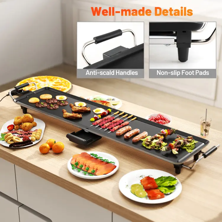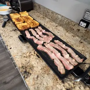 Literally, the absolute BEST cooking surface. The various temperature settings make it so easy to cook with precision. The length of this flat griddle allows for cooking of many different items so everything is hot and fresh at the same time when plating. And, the clean up…!!! Wow!!! Super easy