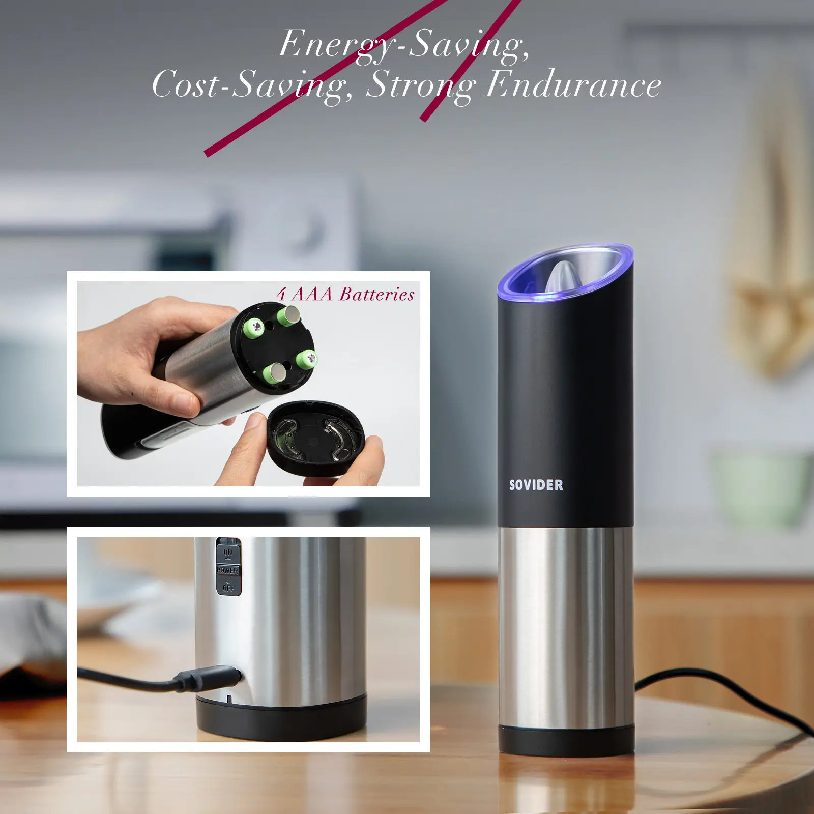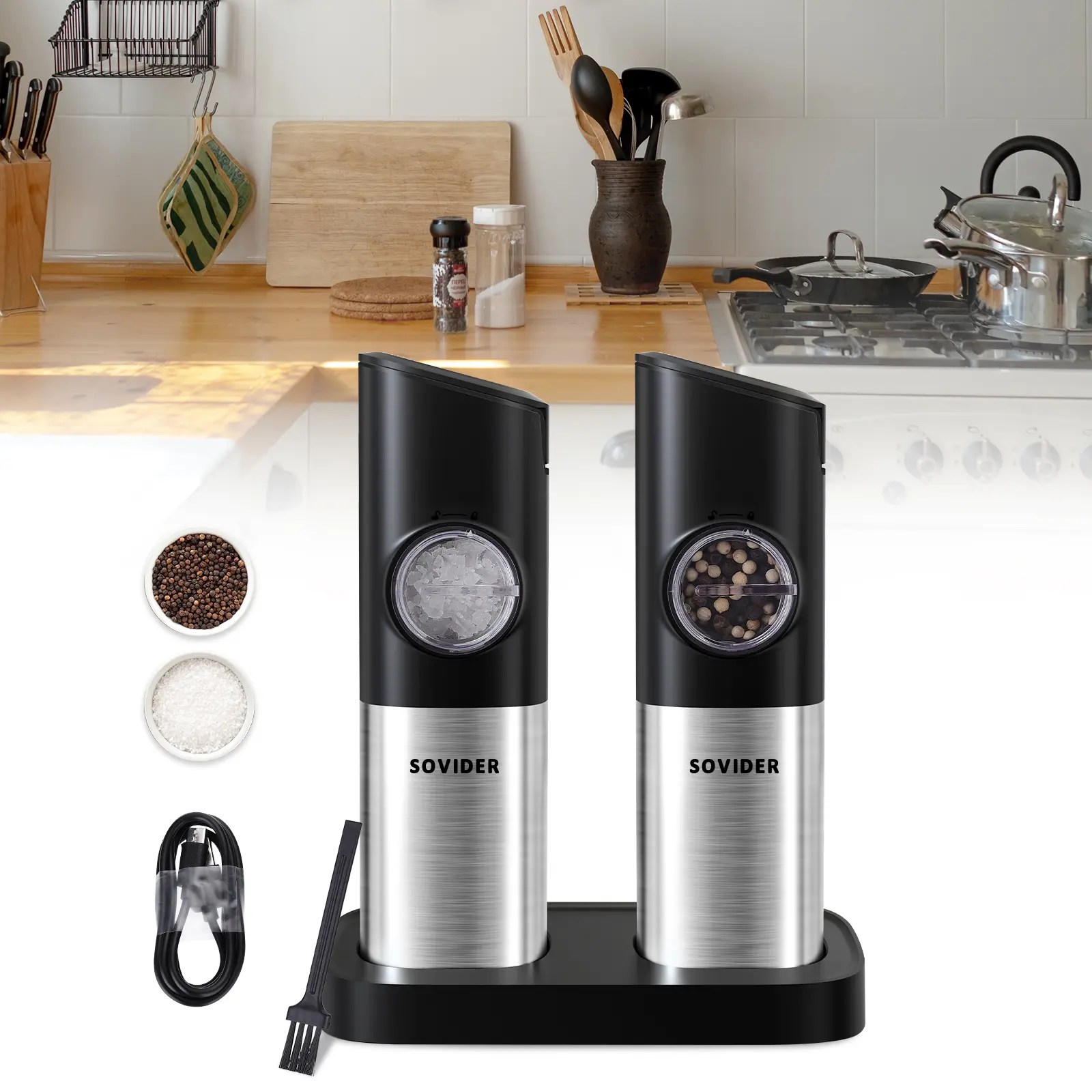 Rechargeable Design: pepper grinder features a rechargeable design besides supporting battery replacement, freeing us from the annoyance of sudden battery low.