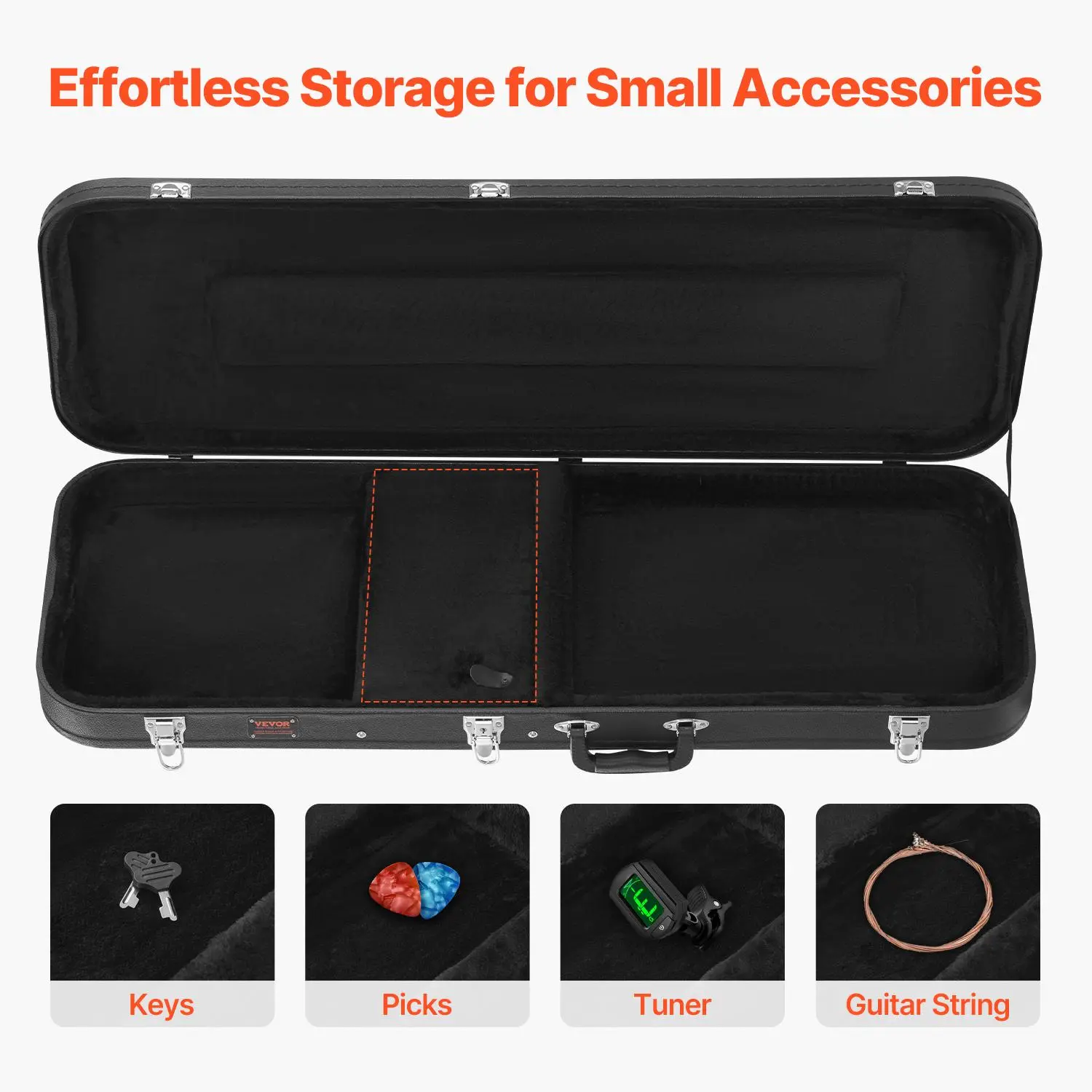 • Accessory Compartment: The interior design of this hard shell guitar case is intimate accessory compartment. It is convenient for storing accessories such as picks and strings, so that your guitar accessories are well organized.