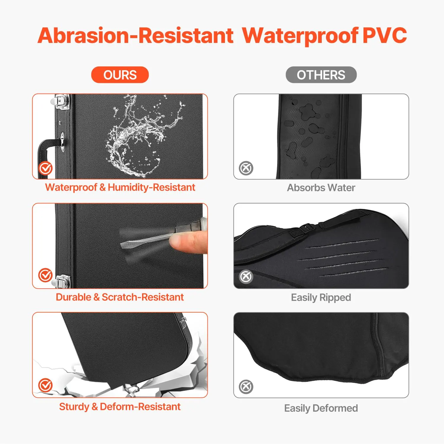 • Sturdy & Durable: The outer shell of this guitar case is made of PVC covering layer and plywood. It is not only sturdy and durable, but also waterproof and dump-proof, effectively keeping the guitar from damage.