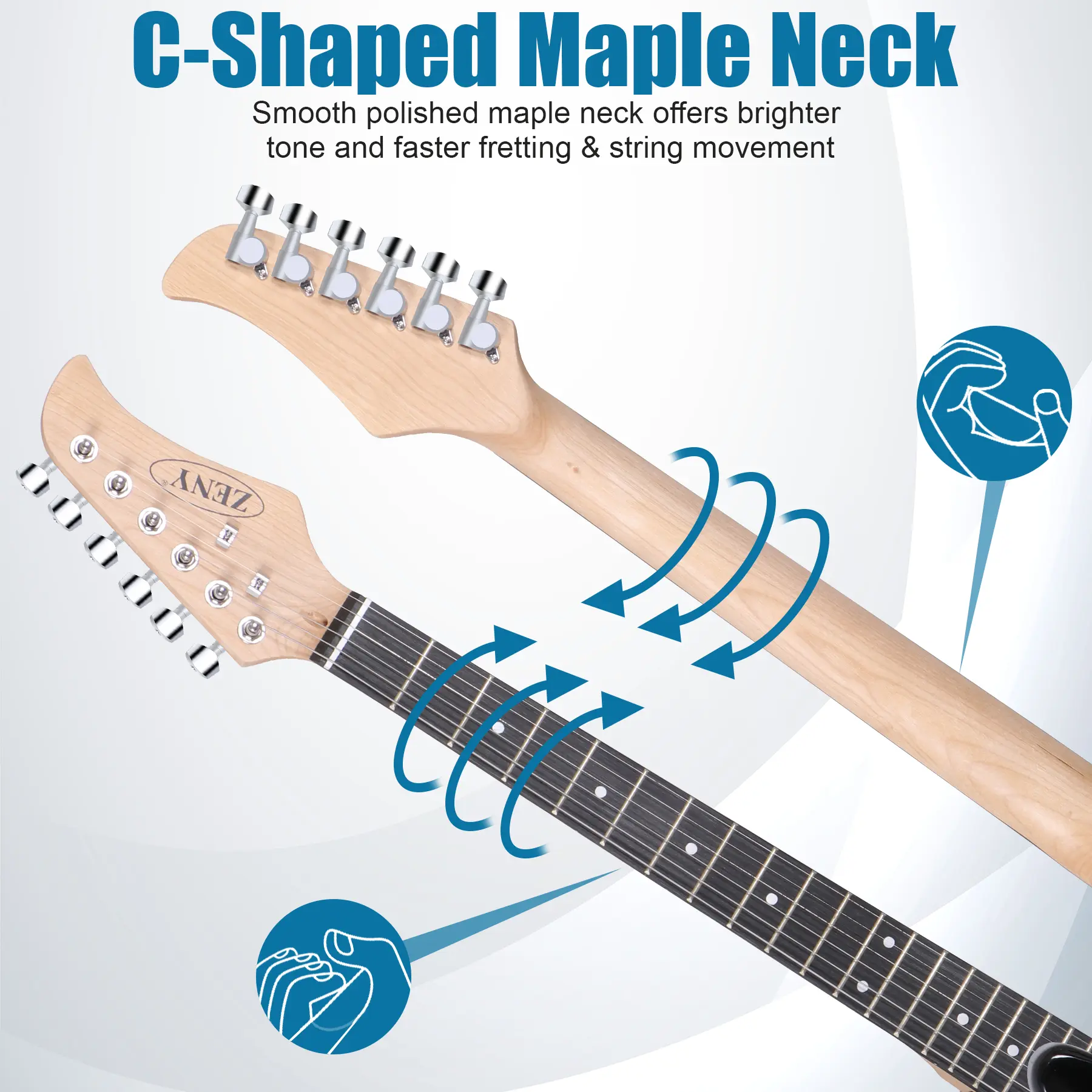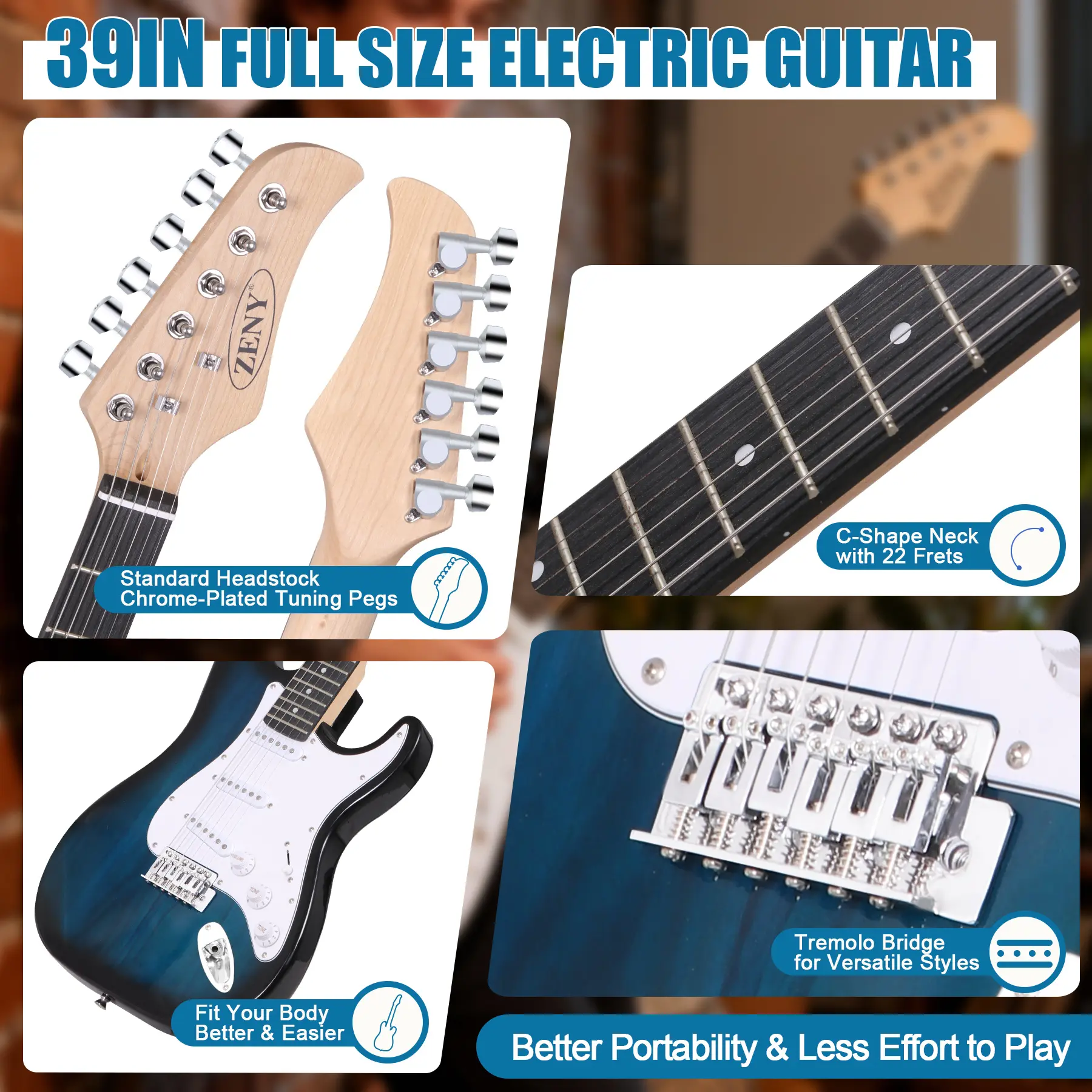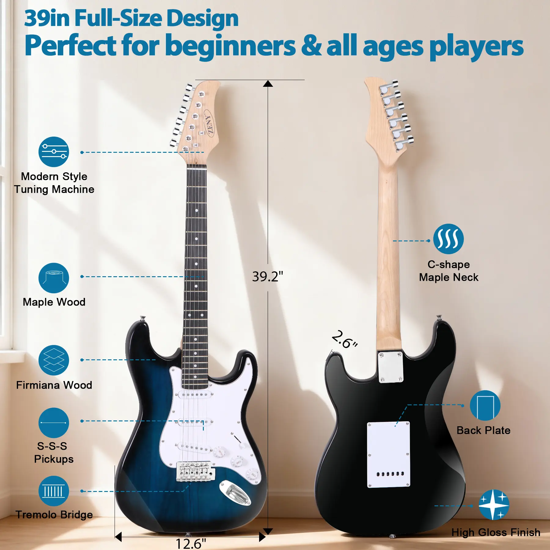 ·Comfortable to Play: The guitar body with a curve shape is ergonomic and easy to play with sitting down, yet is light enough to make playing standup a breeze.