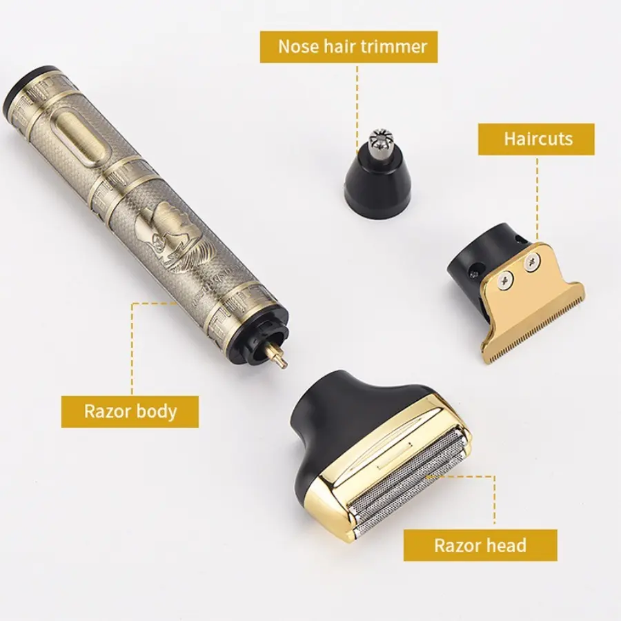 【Multi-functional 3-in-1】: Combining a razor, nose hair trimmer, and hair clipper in one device, tailored for comprehensive grooming needs.