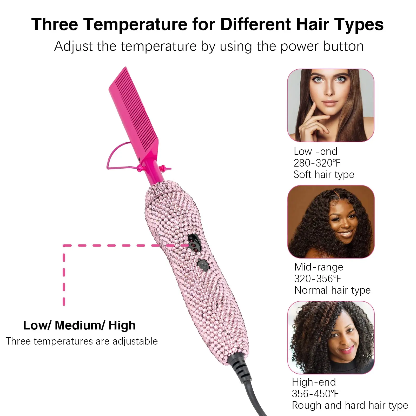 ·【Temperature Adjustable】There are three levels of temperature adjustment: low/medium/high, the temperature can be between 430-450℉, you can choose the right temperature according to different hair quality. Hot comb electric for wigs fully meets the needs of your life!