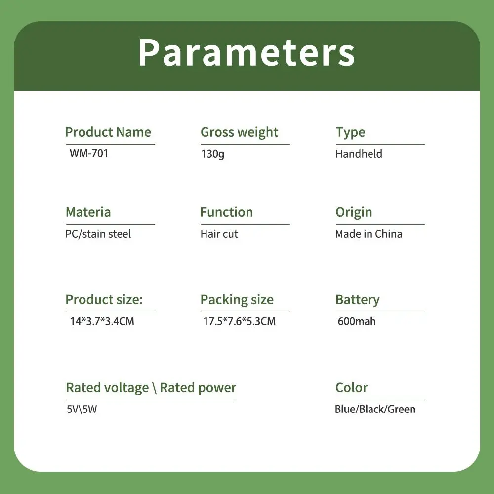 【Rated Power 5W】: The trimmer operates with a power rating of 5 watts, delivering effective performance for grooming needs.