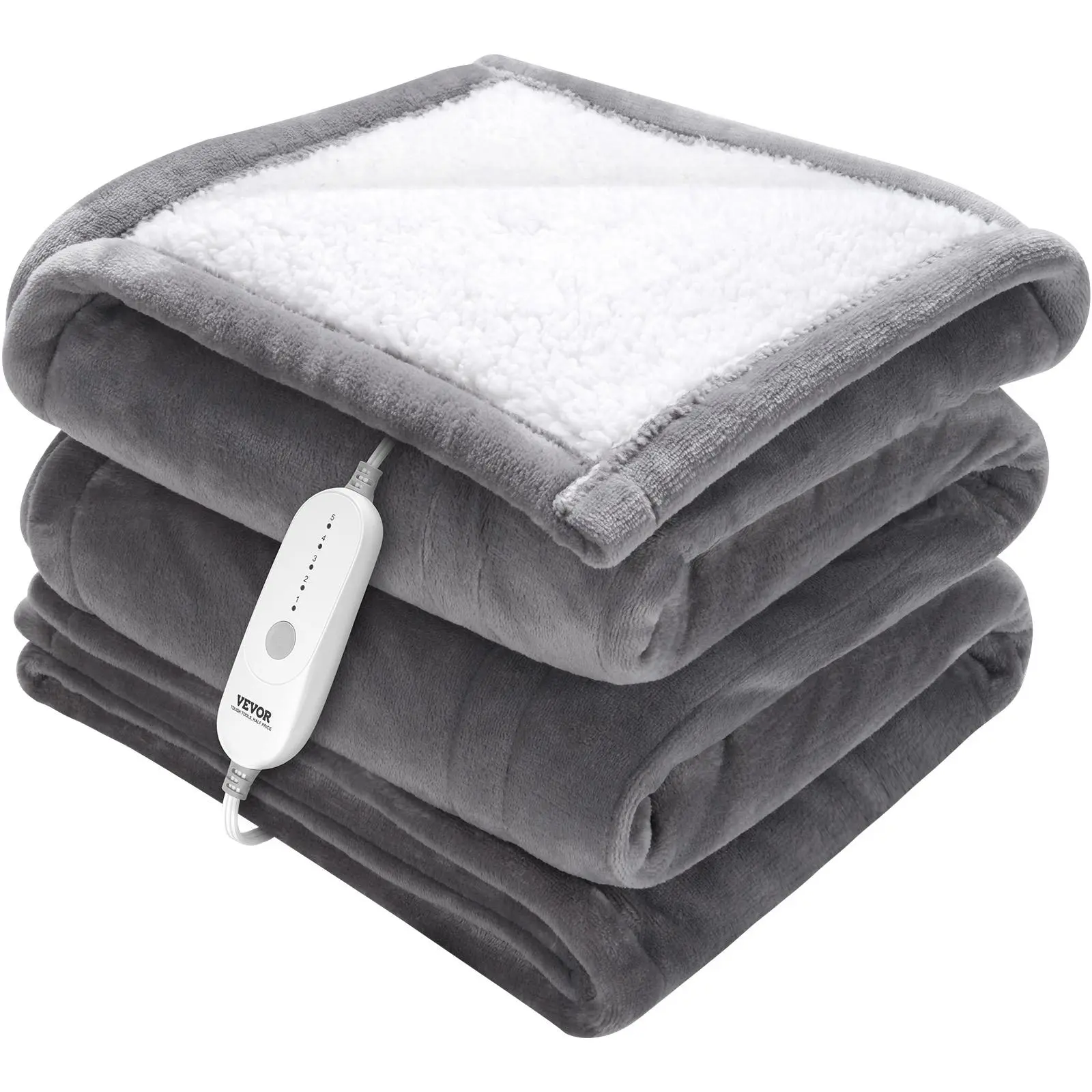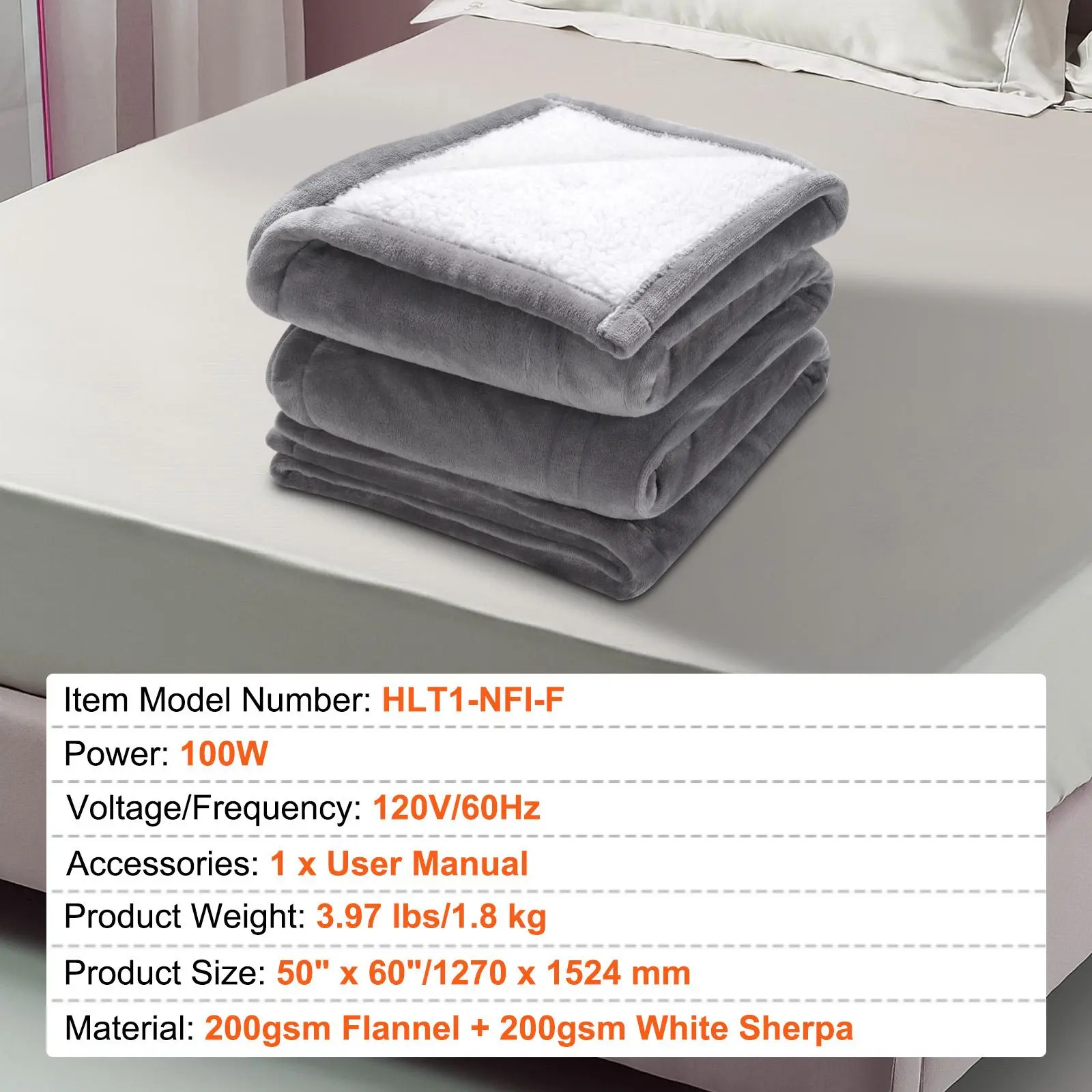 VEVOR Heated Blanket Electric Throw, TikTokShopBlackFriday, 50" x 60" Twin Size, Soft Flannel & Sherpa Heating Blanket with 3 Hours Timer Auto-off, 5 Heating Levels for Sofa, Machine Washable, ETL & FCC Certification (Grey)