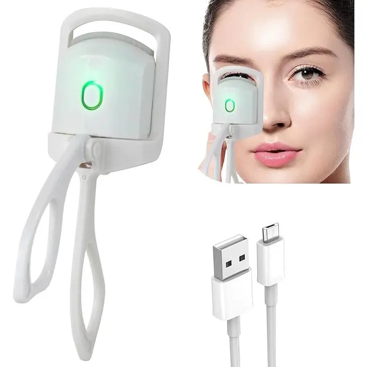 Electric Heated Eyelash Curler Portable Comb Eye Lash Perm Eyelashes Curls Rechargeable Thermal Eyelash Curler Tool White