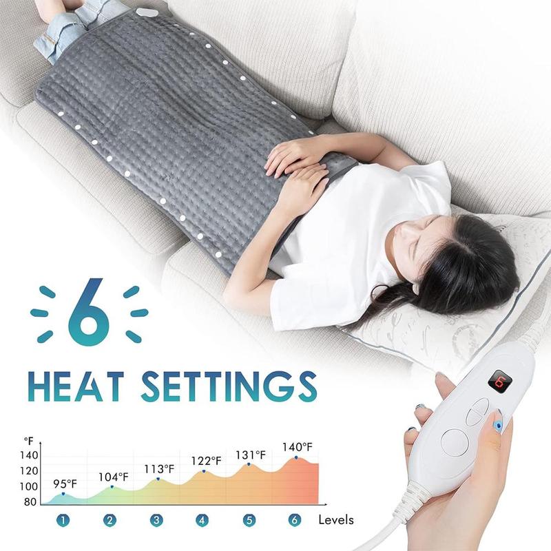Enjoy 6 heat settings ranging from 95 °F to 140 °F. Choose the temperature mode based on your needs. The pad is UL certified with a 2-hour auto-off function for safety. Overheating and overcurrent protection ensure secure daily use.