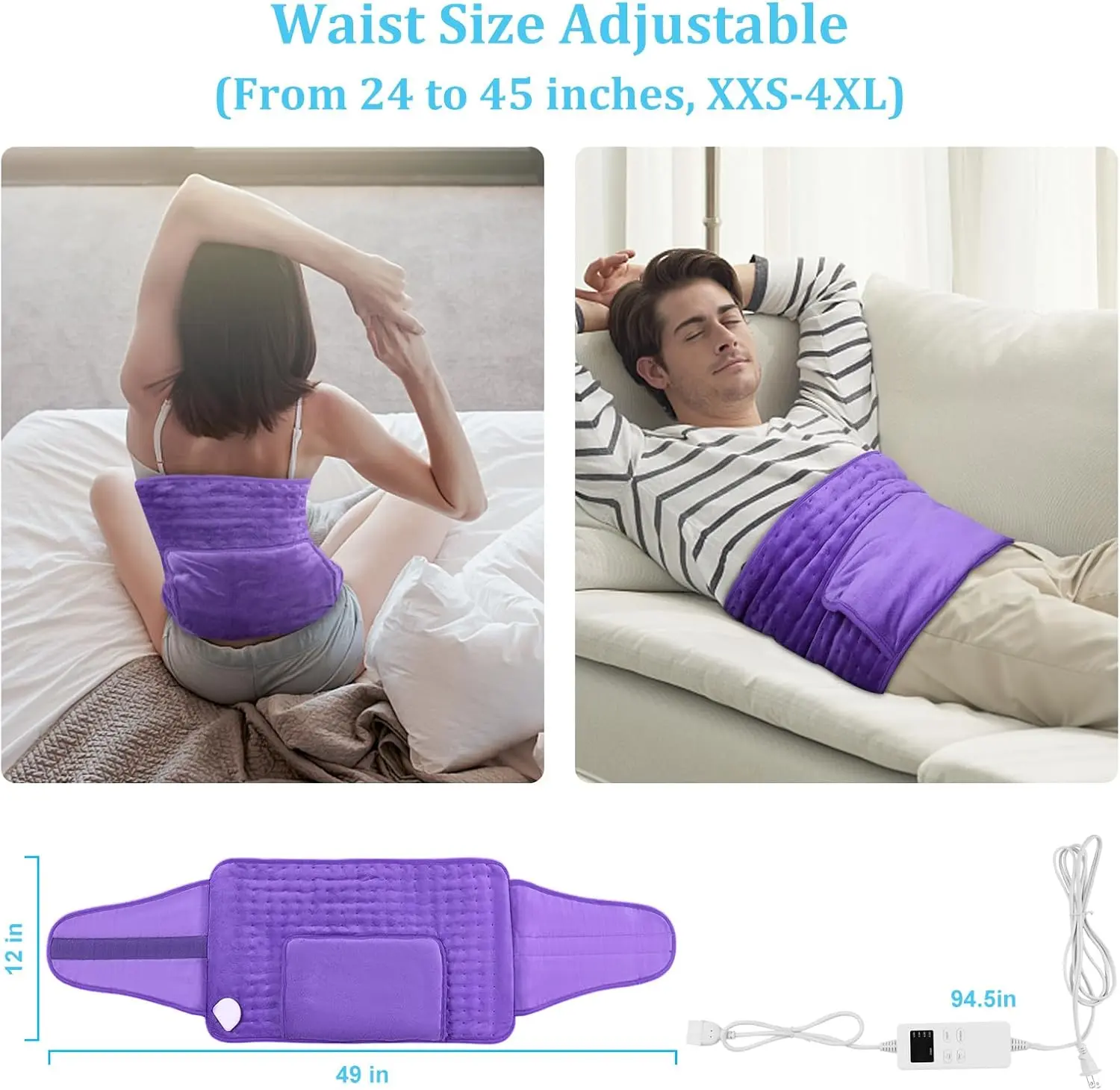 Ā·ćWrap Around Heating PadćClassic 12x24" heating pad upgraded with comfortable size adjustable waist belt, wearable heating pad release your hands while using it as lower back heating pad, period cramps, shoulder pain relief, etc. Wider waist belt and size range not only comfortable but also suit for people in different waist size.