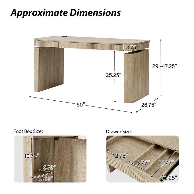 ·Smooth-Gliding Drawers: Three spacious drawers glide smoothly, closing quietly.