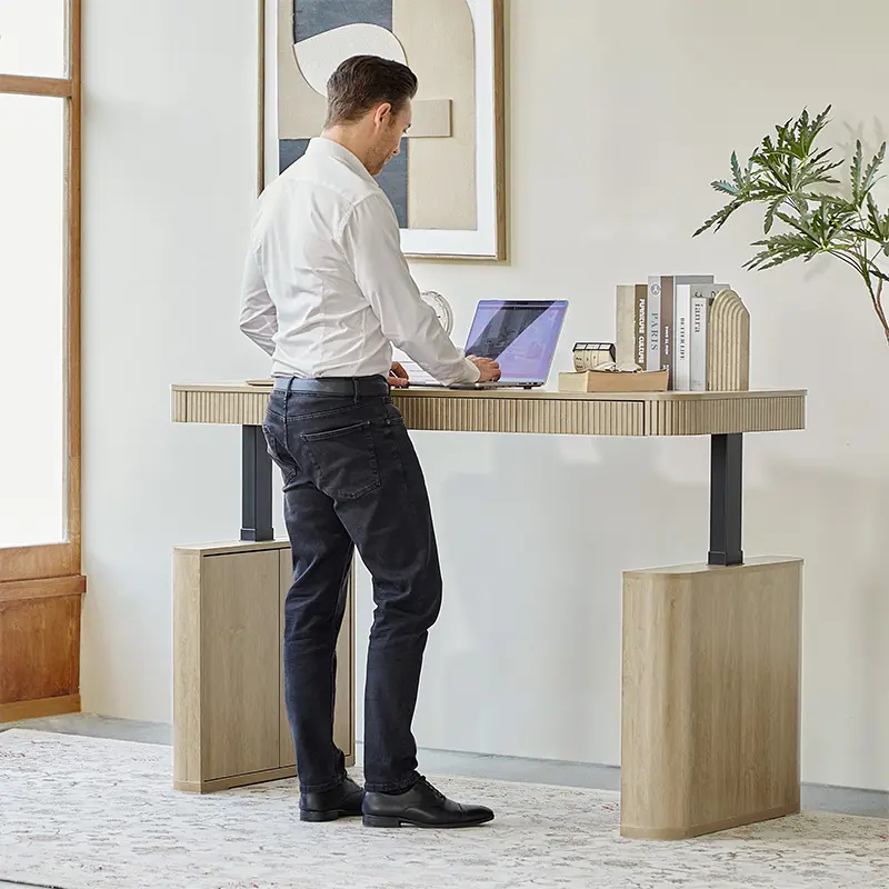 The Hulala Baggio Modern Electric Standing Desk combines functionality with elegance. Its sleek design enhances any office decor. The electric lift mechanism ensures smooth height adjustments, promoting a healthier work posture. Perfect for those who value style and efficiency.