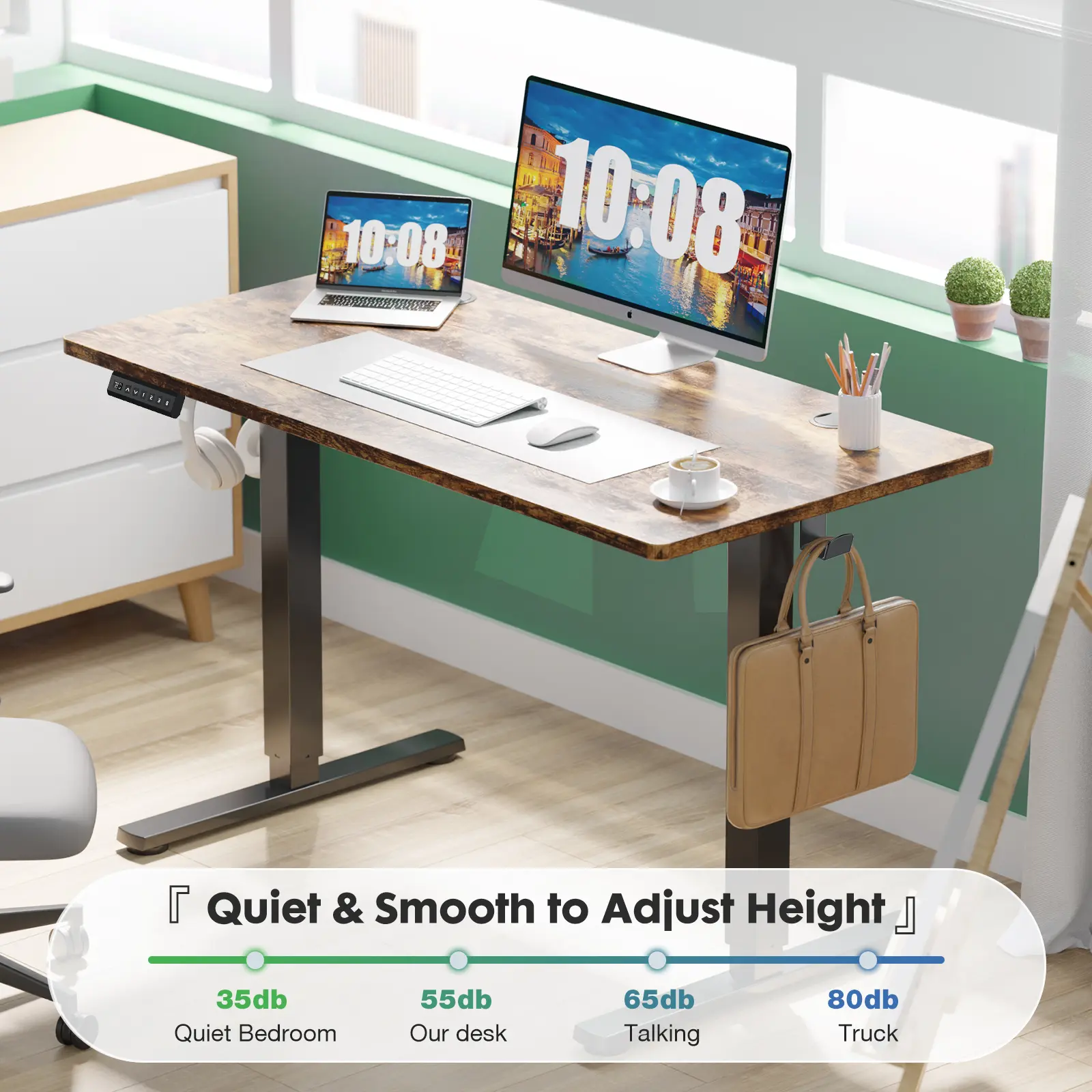 I needed a desk for a tiny space that still felt powerful. And this one delivered easy setup with clear instructions. Smooth electric sit to stand sturdy and doesn't feel small at all. Work from home WIN!