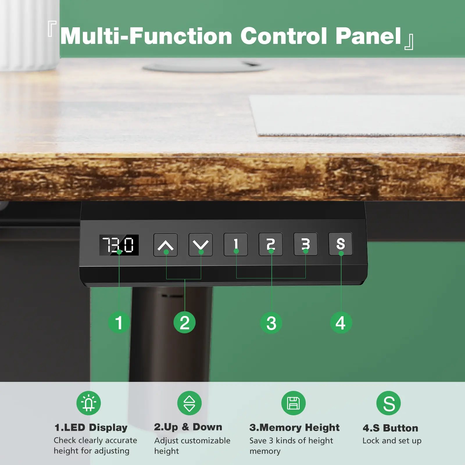 Perfect size! Super easy to program to personal settings. I absolutely love my desk!!