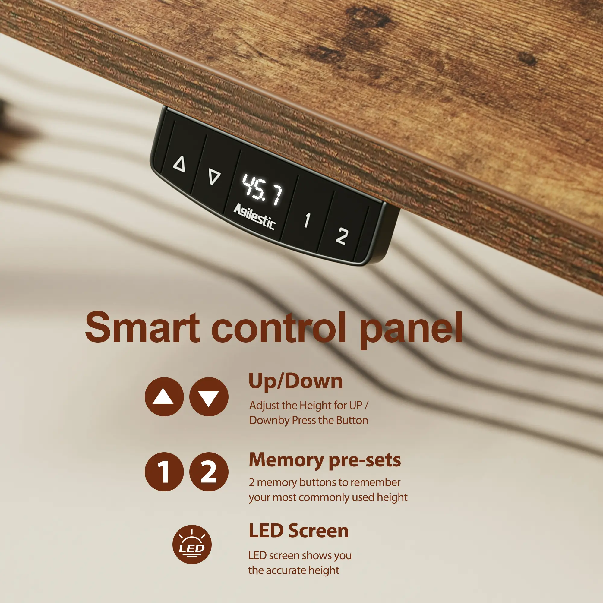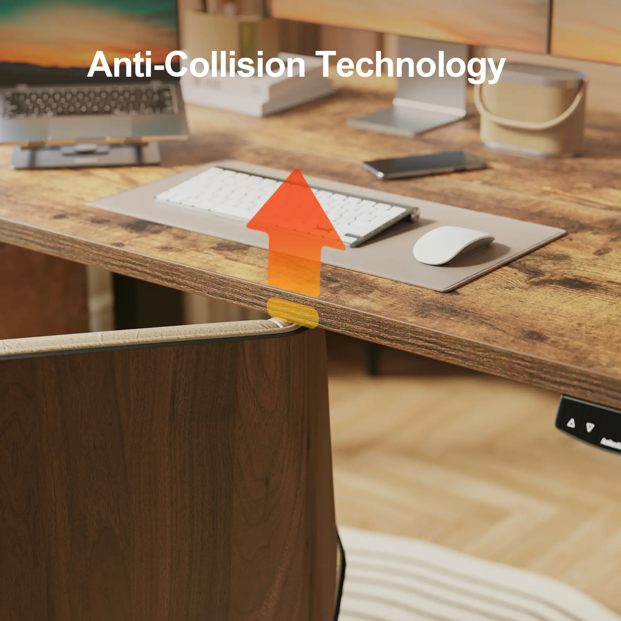 Save up to two preferred height settings with the easy-to-use memory controller. The advanced anti-collision feature detects obstacles during movement and automatically retracts 1 inch in the opposite direction to prevent damage or injury.