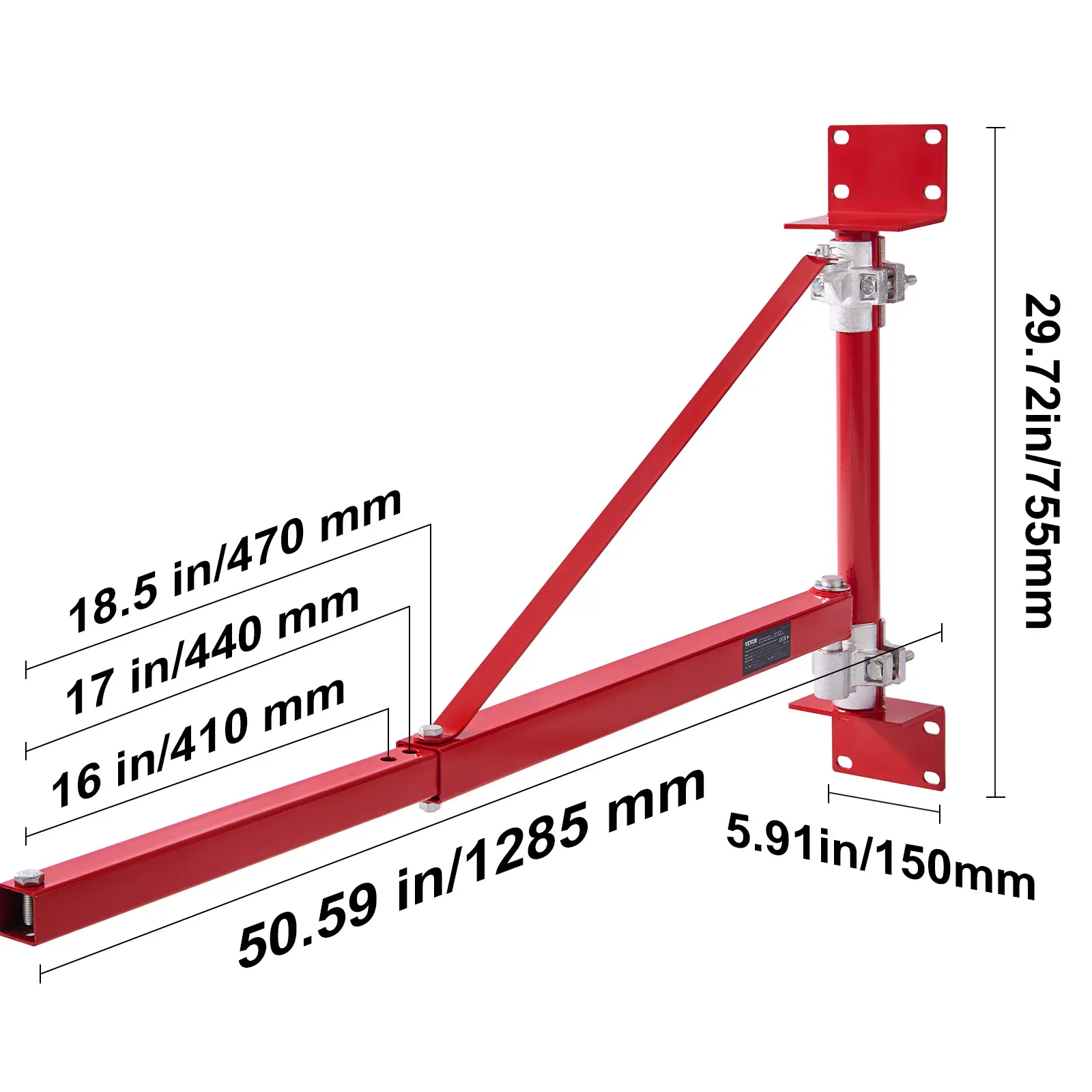 • High Load Capacity: Our hoist support arm effortlessly handles weights up to 661.39 lbs (300 kg), while the extended small square tube supports loads up to 330.69 lbs (150 kg). The capacity ensures stability and security in the workspace, thus enhancing efficiency when handling heavy equipment or materials.