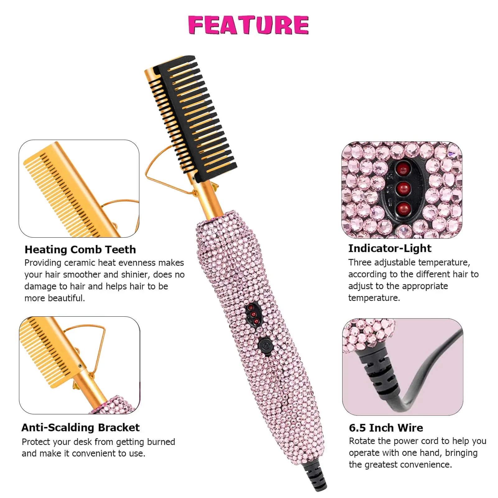 ·【Simple and Convenient to Use】Goiple straightening comb has one key switch, 360° line, so that you can easily adjust the direction without bondage, no space, can be taken to travel and business trips, is a beautiful and practical beauty tool.
