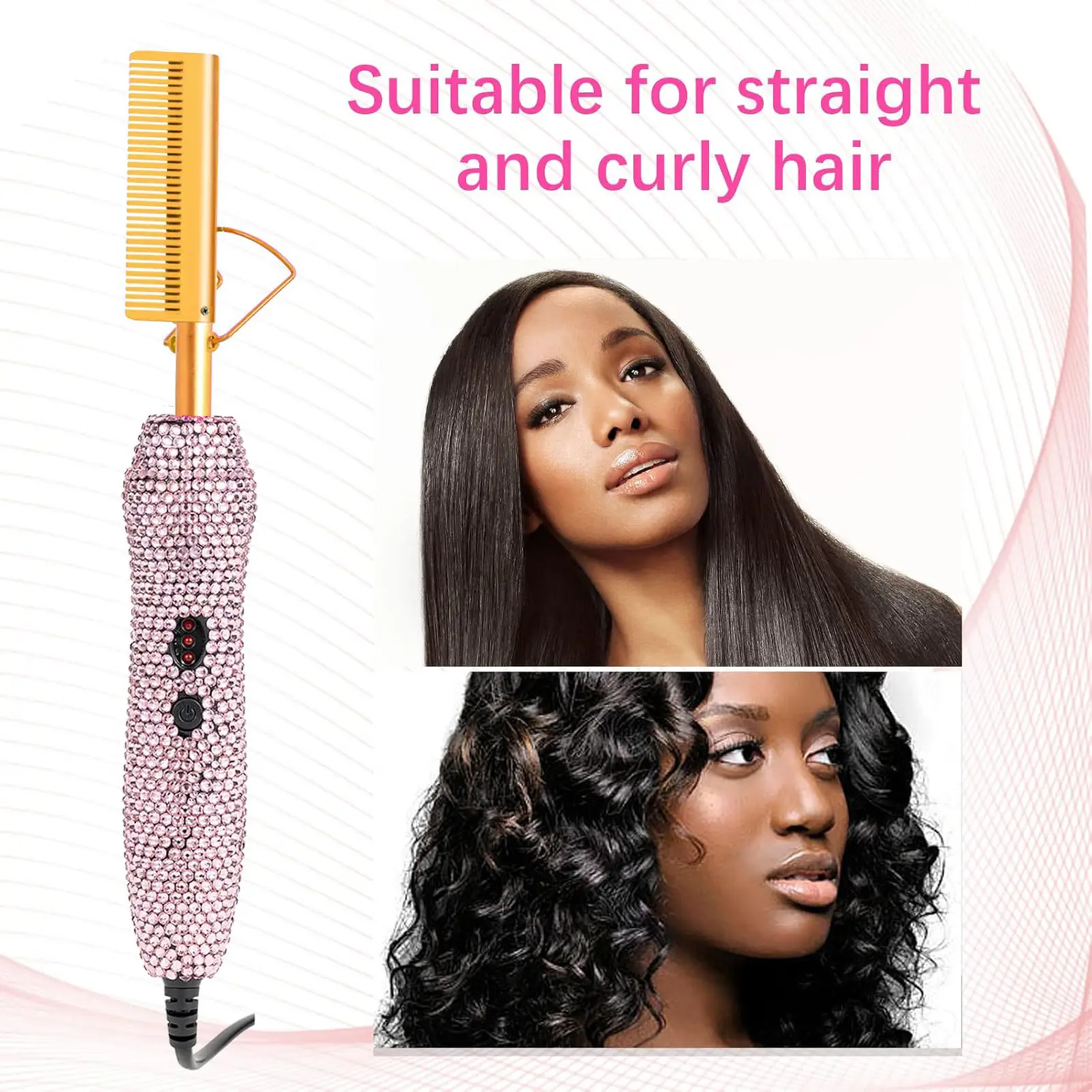 ·【Temperature Adjustable】The hair straightener has three levels of temperature adjustment: low/medium/high, the temperature can be between 430-450℉, you can choose the right temperature according to different hair quality. Hot comb electric for wigs fully meets the needs of your life!