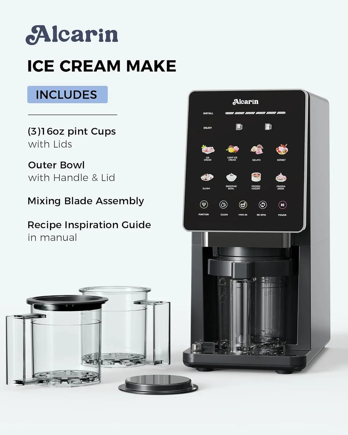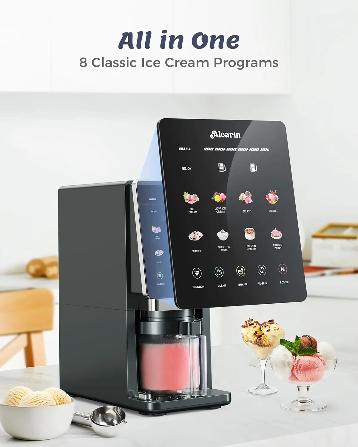 ·10 One-Touch Programs: The ice cream maker is made for your frozen treat. Unlock effortless creativity with a large, vibrant touchscreen. Choose from 8 one-touch programs for classics like gelato, sorbet, slushies, smoothie bowls, and frozen yogurt. Elevate your treats with the Mix-In and Re-Spin functions for endless custom possibilities.