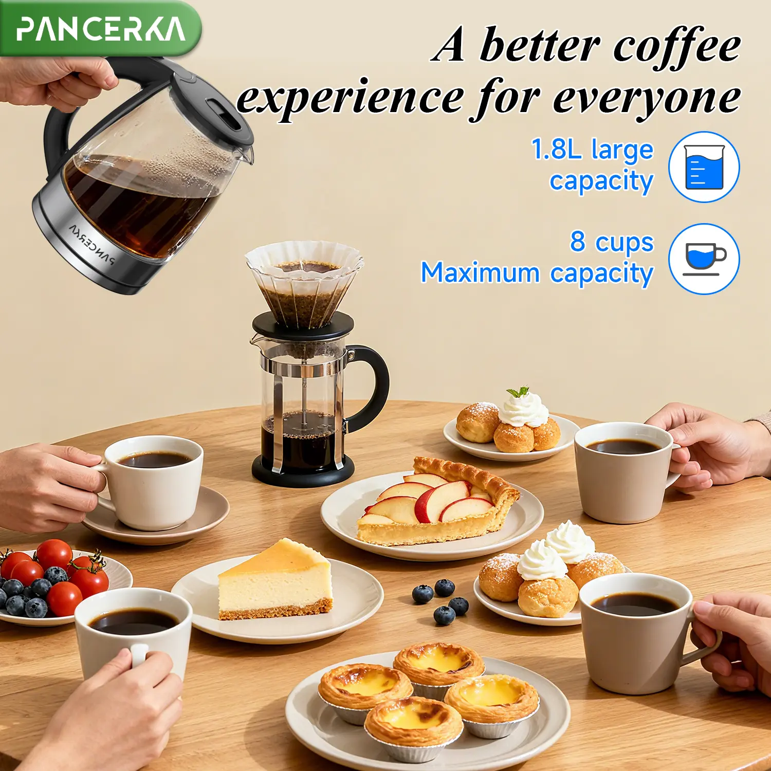 ·SAFE AND RELIABLE: The electric kettle is made of borosilicate glass, and the bottom of the kettle is made of. All parts in contact with water are made of high-quality materials. No odor. All materials are durable and easy to clean, and very environmentally friendly.