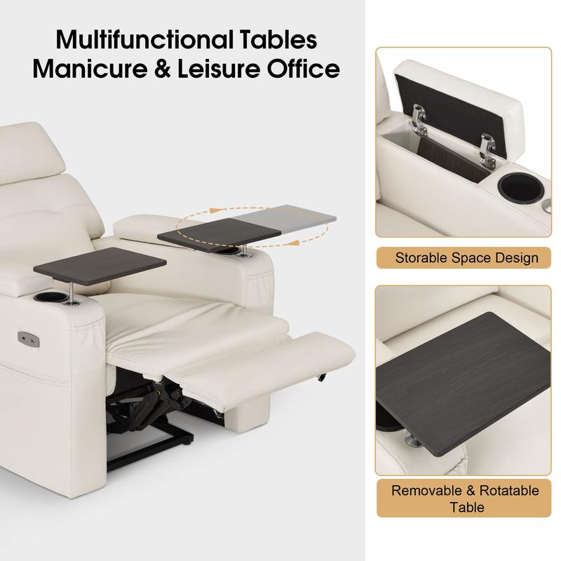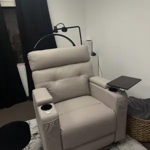 Crafted from semi-silicone PU leather, the chair is waterproof and easy to clean. Nail polish spills can be thoroughly cleaned with a damp cloth. The overall dimensions are 36.8"(W) x 37.4"(D) x 42.1"(H), with a reclined size of 36.8"(W) x 71.3"(D) x 42.1"(H). The backrest size is 33.5"(W) x 26.8"(H), and the seat size is 23.6"(W) x 20.5"(D). The seat height is 19.7", and the backrest recline angle is 111°-162°.
