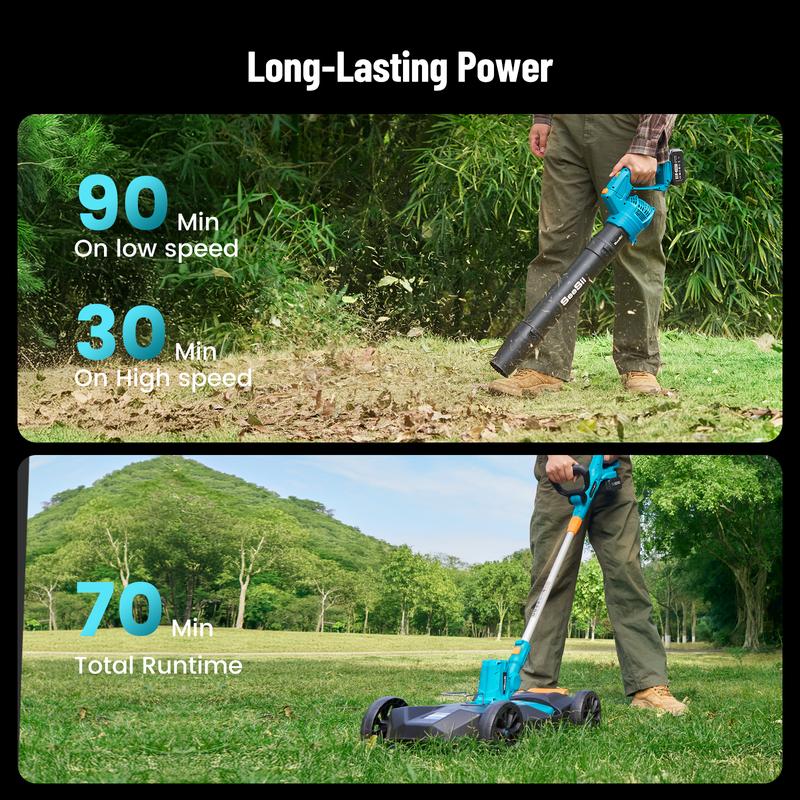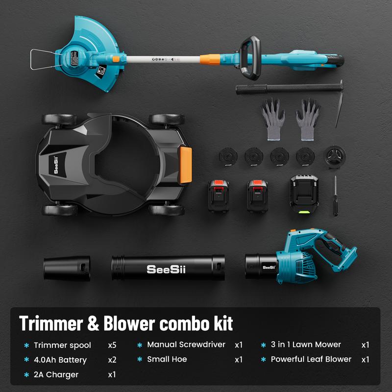 5. 【Seesii】 Electric 12" Lawn Mower and Leaf Blower Combo Kit, 3 in 1 Cordless Weed Wacker Grass Eater with 1.3"/2.1" Height, Battery String Trimmer Rotary Handheld Blower with 5-Speed for Yard Lawn