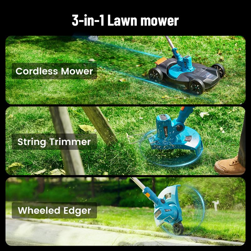 【Seesii】 Electric 12" Lawn Mower and Leaf Blower Combo Kit, 3 in 1 Cordless Weed Wacker Grass Eater with 1.3"/2.1" Height, Battery String Trimmer Rotary Handheld Blower with 5-Speed for Yard Lawn