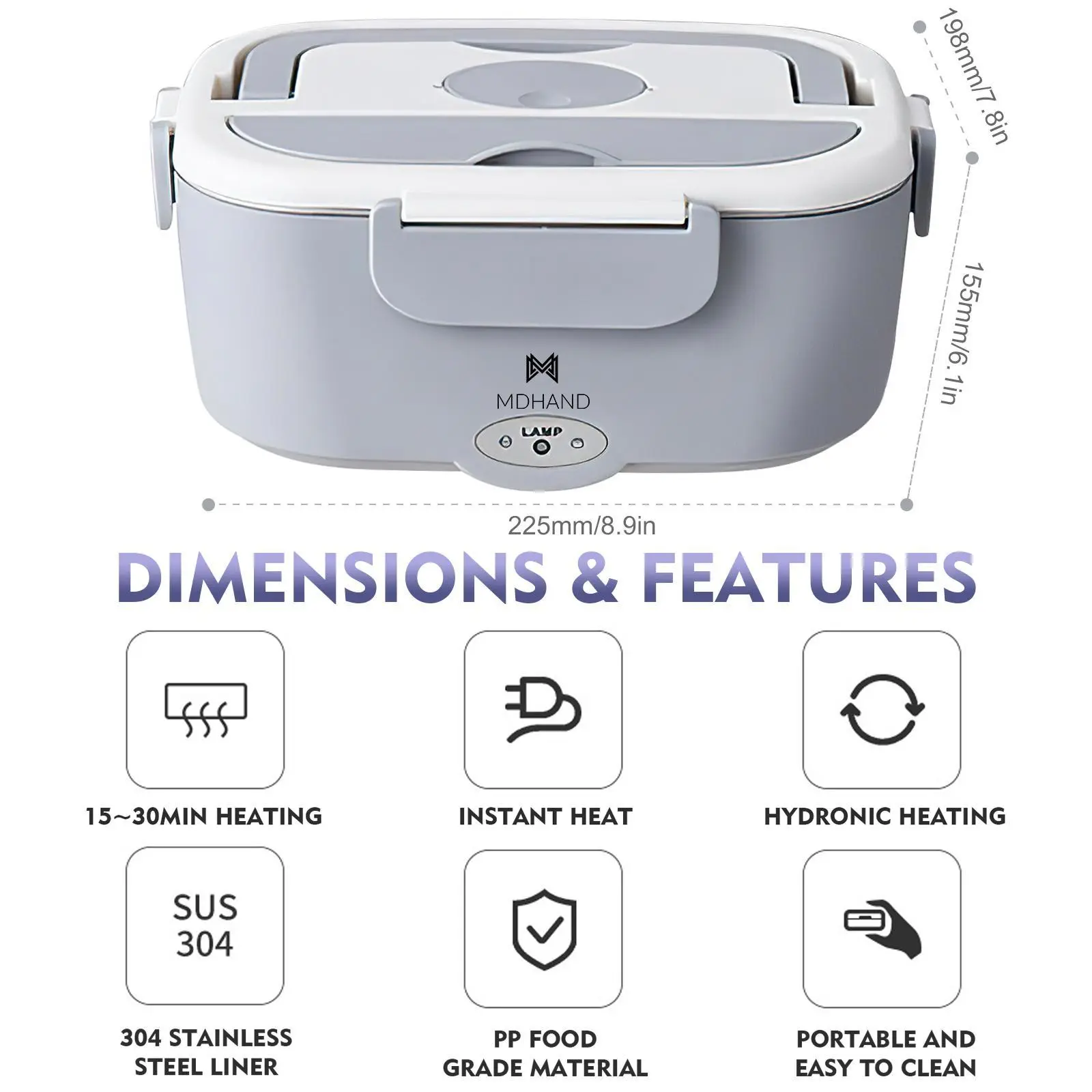 【 Easy to Clean】MDHAND food heater lunch box built-in rubber sealing ring can avoid leakage which will keep your food warm and fresh. 304 Stainless Steel Tray can be easily taken out for cleaning, tray can be put into the dishwasher.