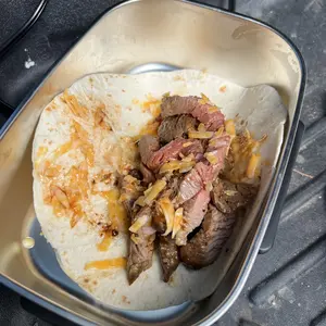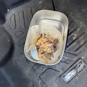 Material: Muy bueno excelente mantiene l comida caliente por buen tiempo trae su cubierto 🍴 su cuchara y un envase extra muy bueno bonito y