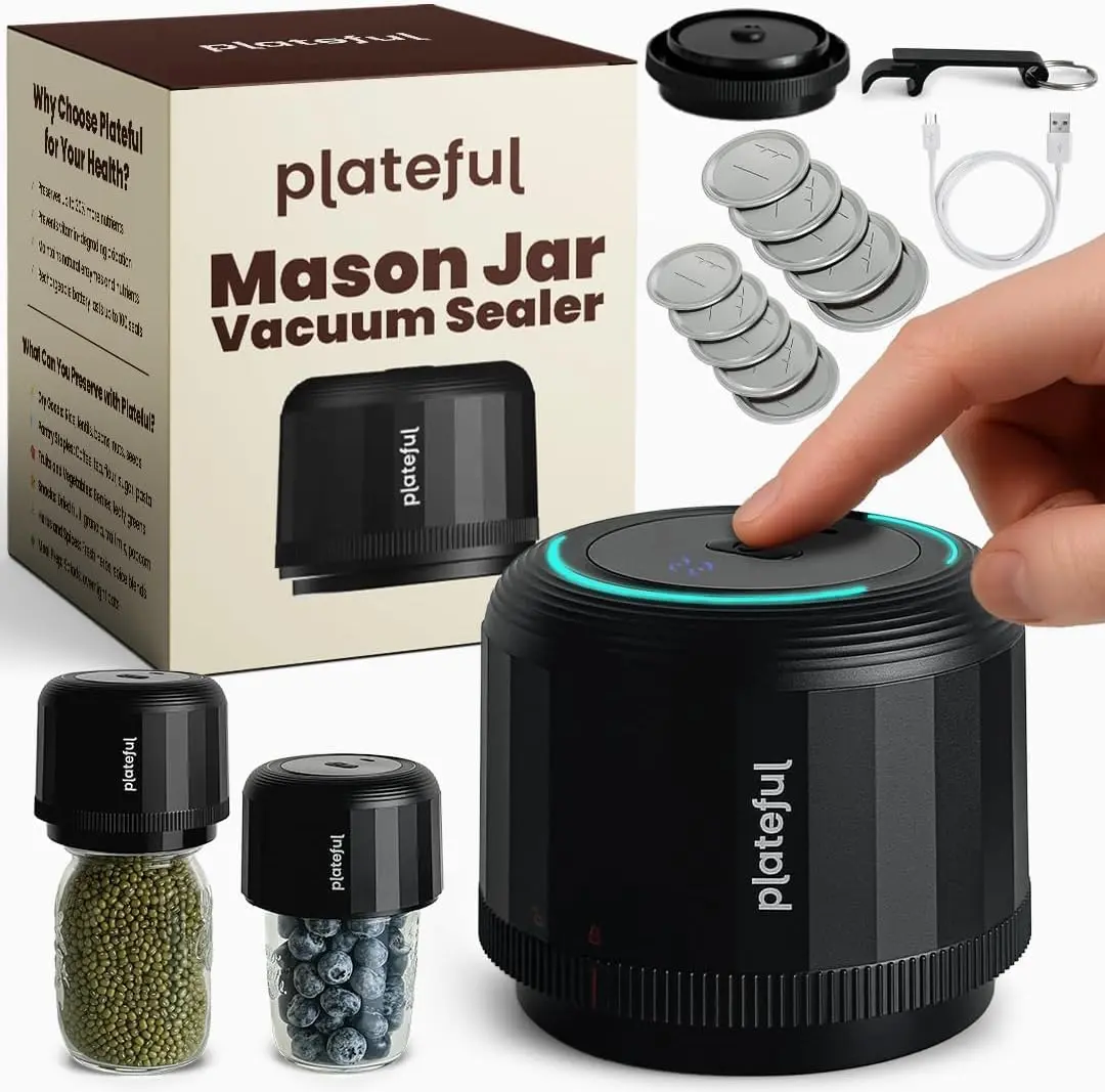 This electric mason jar vacuum sealer makes food storage much easier and more efficient. The one-touch operation keeps things simple, even if you’ve never used a vacuum sealer before. I like that it works with both wide and regular mouth lids, which makes it versatile
