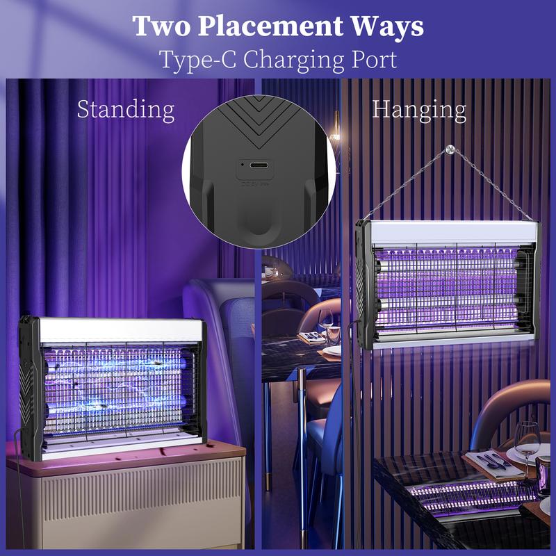 ·Reliable Bug Zapper:This electric bug zapper combines four key parts: a high-voltage grid, special LED attractant lights, a protective fence, and a collection tray. With a strong 3200V grid and LEDs that emit insect-attracting wavelengths, it lures flying insects by light and safely eliminates them. Perfect for garages, sheds, warehouses, and homes.