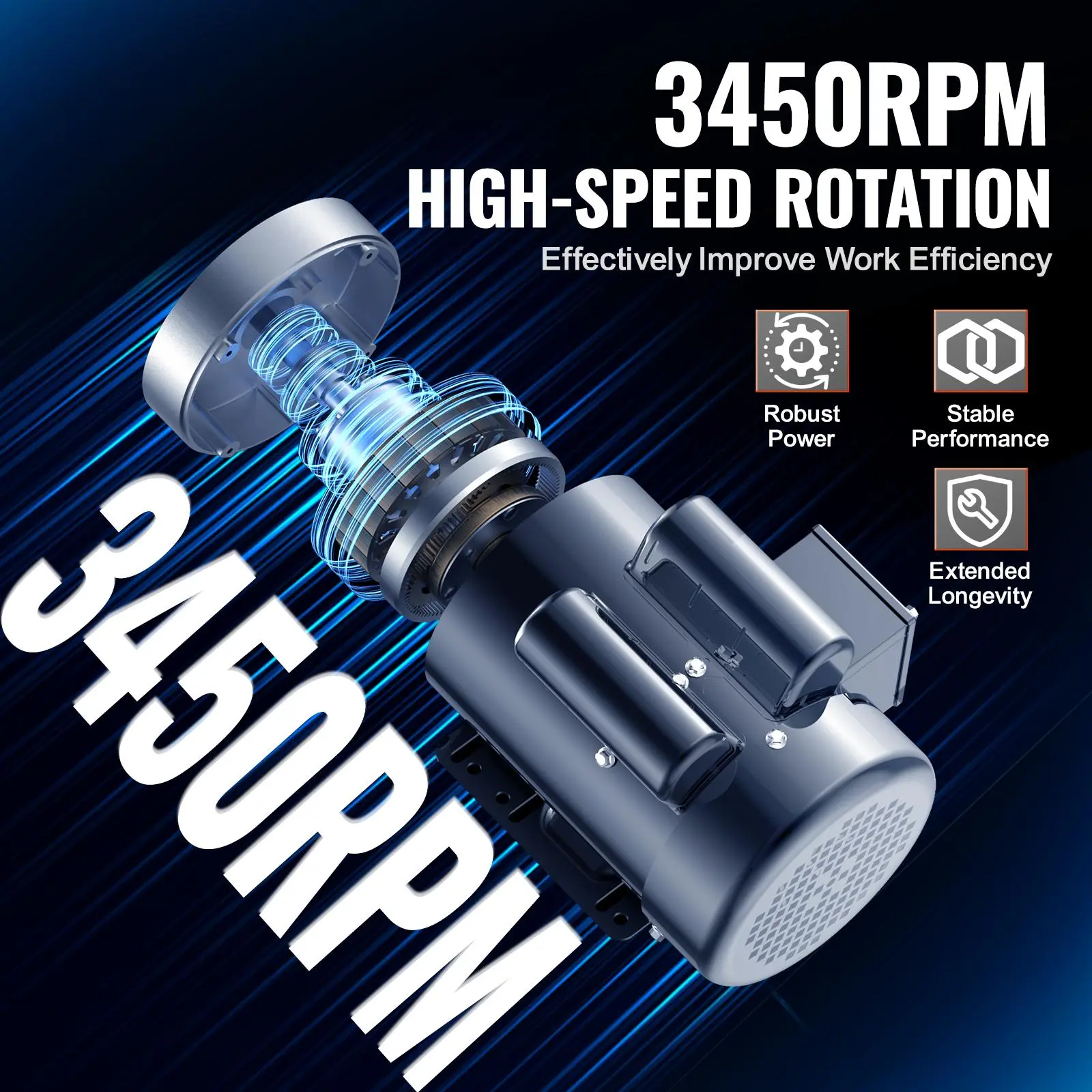 • Powerful Performance: 1.5HP, Single Phase, Full Load Current: 15.0/7.5A, AC 115V/230V 60Hz, 3450 RPM High Speed, SF: 1.15.