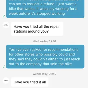 Bike doesn't work as an Ebike and they will not give me a refund even after doing everything they asked me to do and I even sent them a video. I'm now waiting on tiktok for my refund.