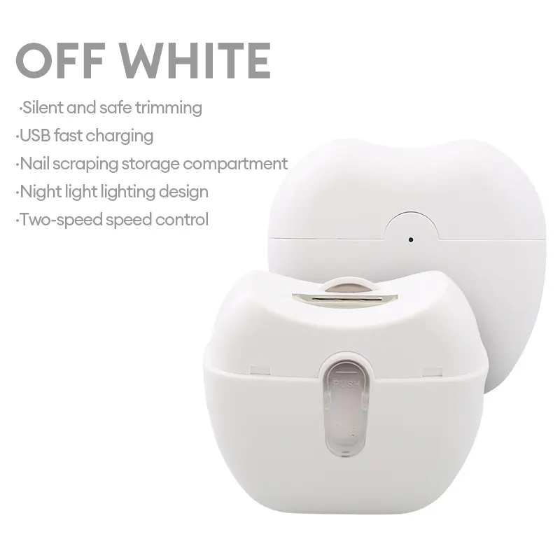 Buen producto fácil de usar, viene con su cable para cargar, 2 velocidades, lo puedes usar donde sea ya que las uñas que corta las guarda en su interior, lo recomiendo 100%