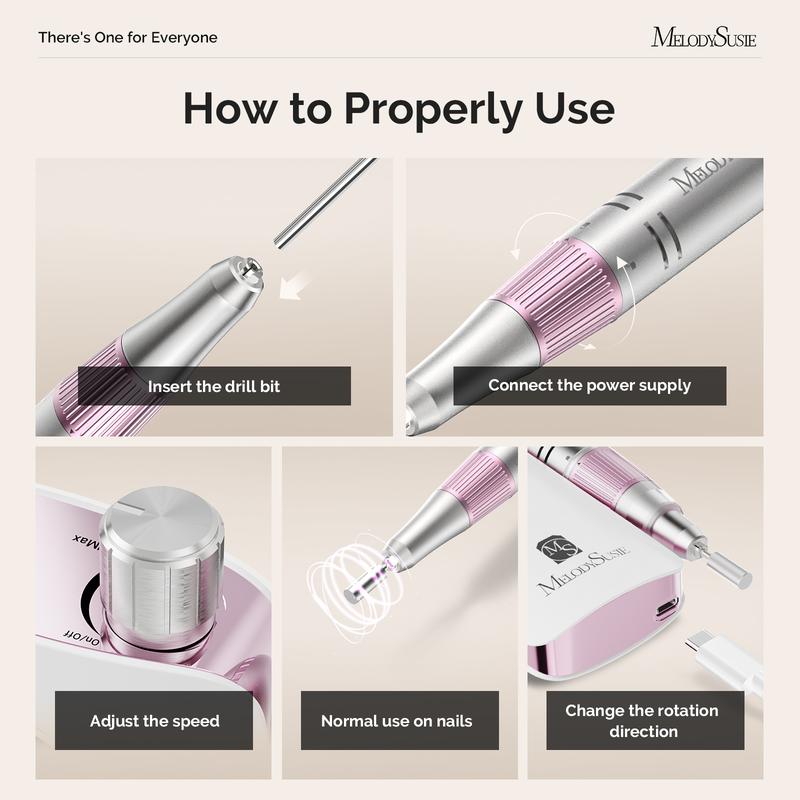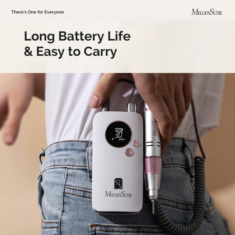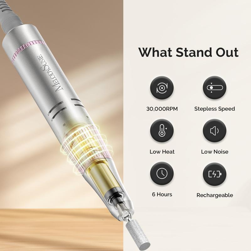 Absolutely Love This Drill, The Packaging Wasn’t Damaged, Came With Extra Sanding Bands. Comes With a Warranty, Pretty and Sleek. Battery life Last A Long Time. Overall 10/10 Highly Recommended For Beginner Nail Techs And Seasoned Nail Techs.
