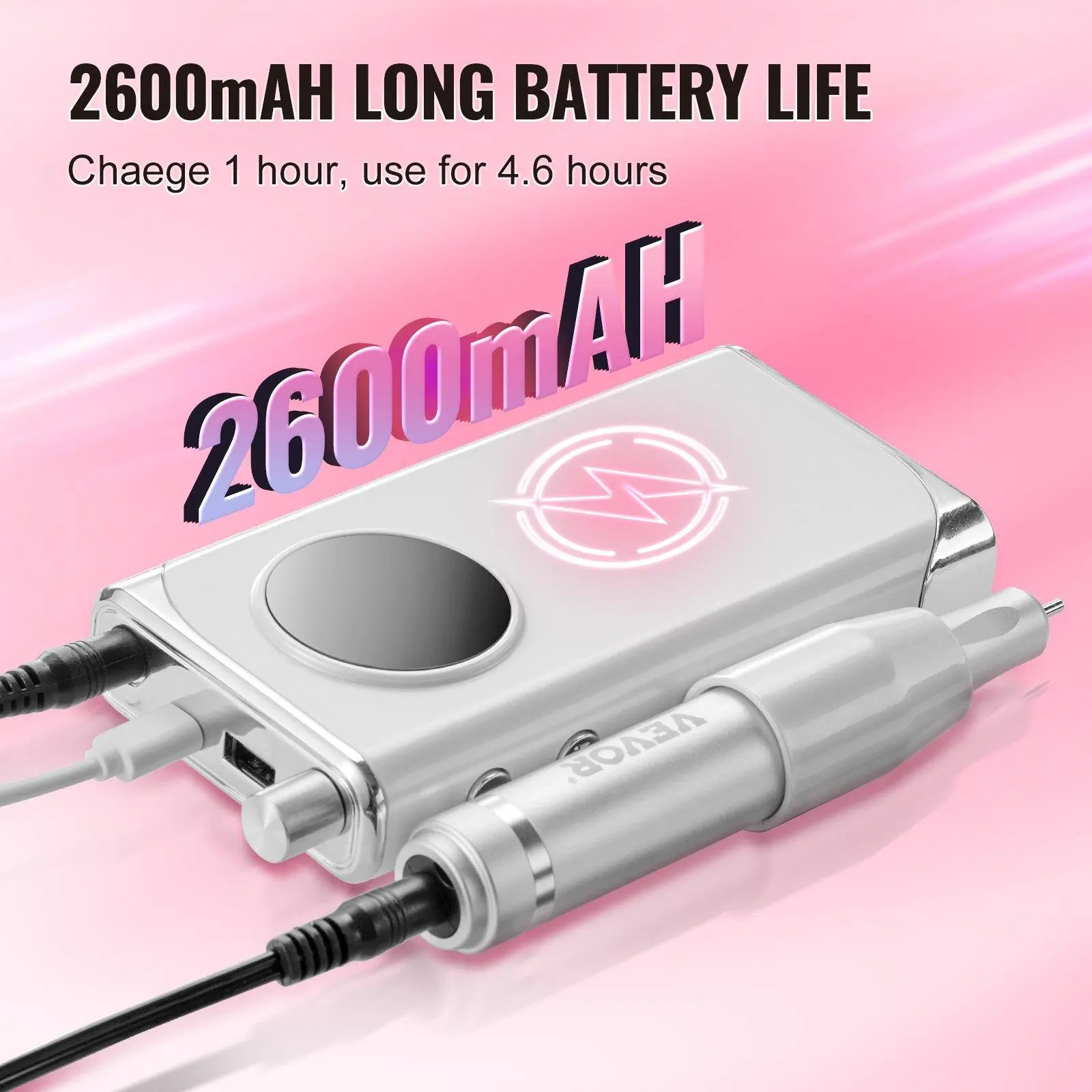 ·Charge Less, Do More: With a high-capacity battery of up to 2600 mAh, this rechargeable cordless nail e-file can work continuously for up to 4.6 hours on a single charge, eliminating the hassle of frequent recharging. Its cordless and portable design allows you to do your nails anytime, anywhere, without being tethered by cords.