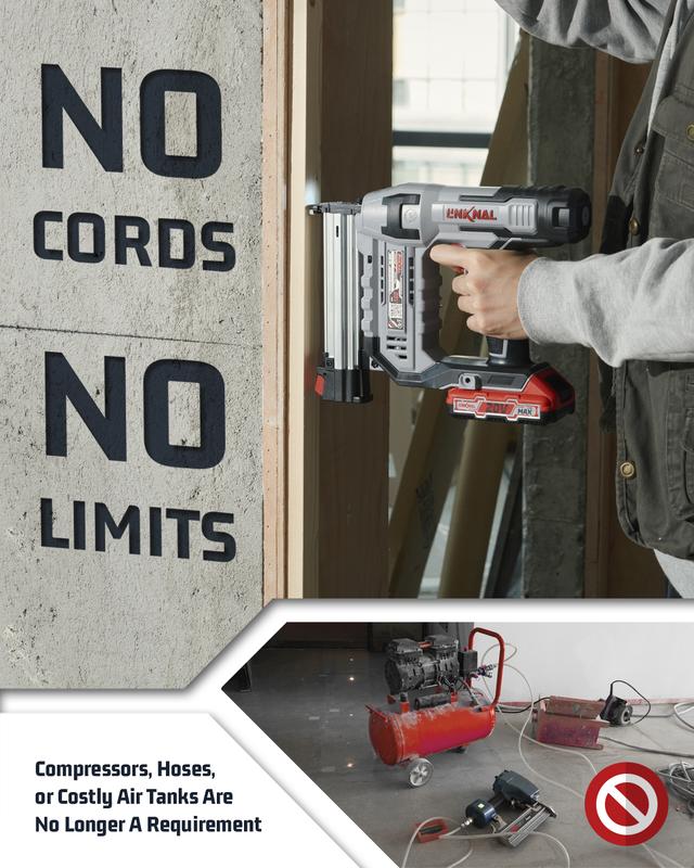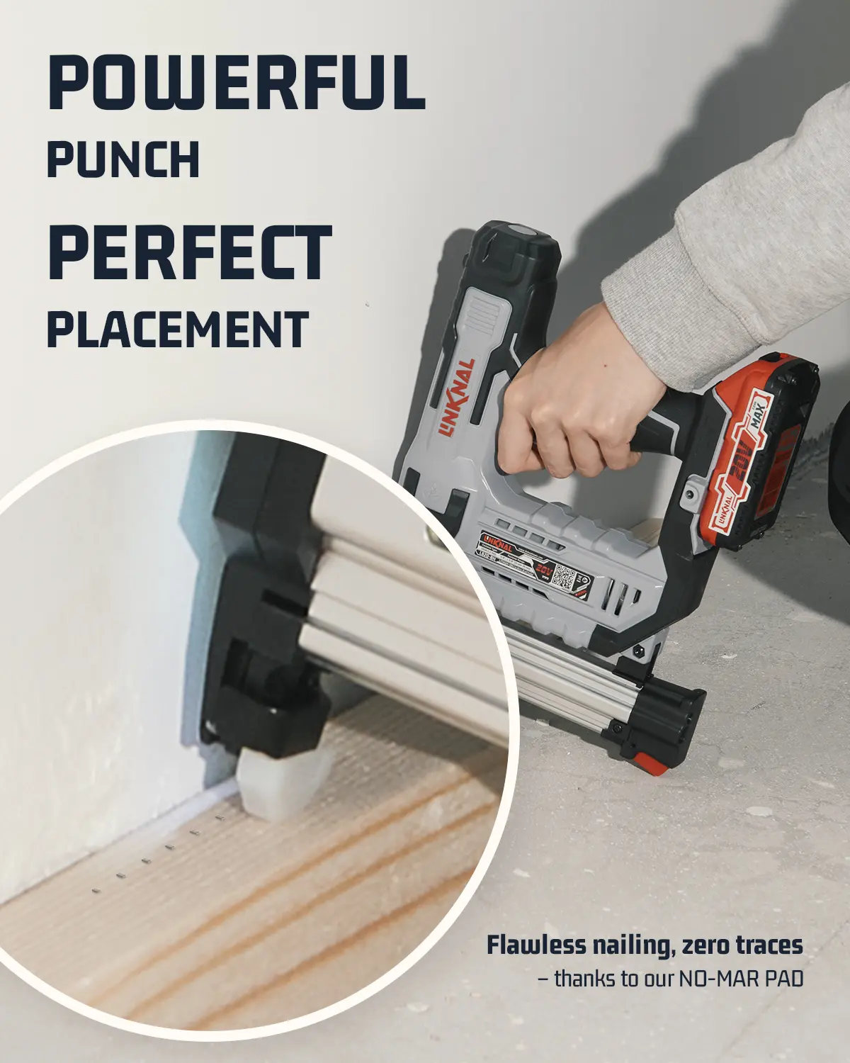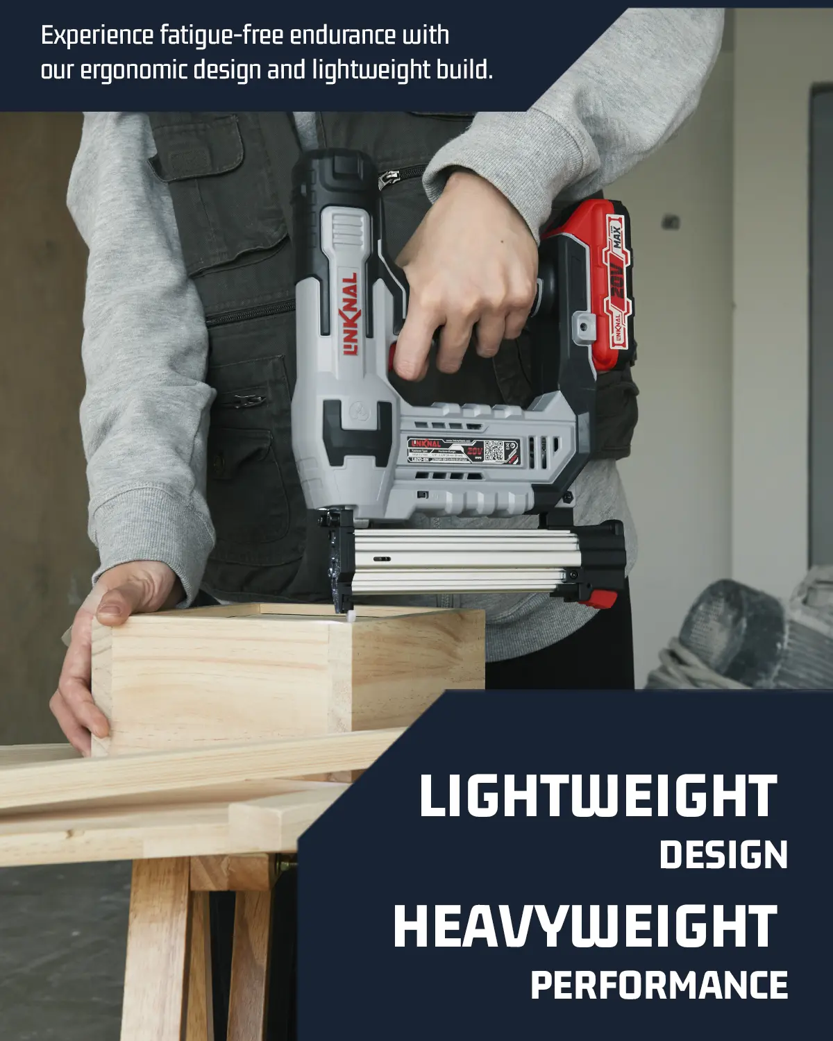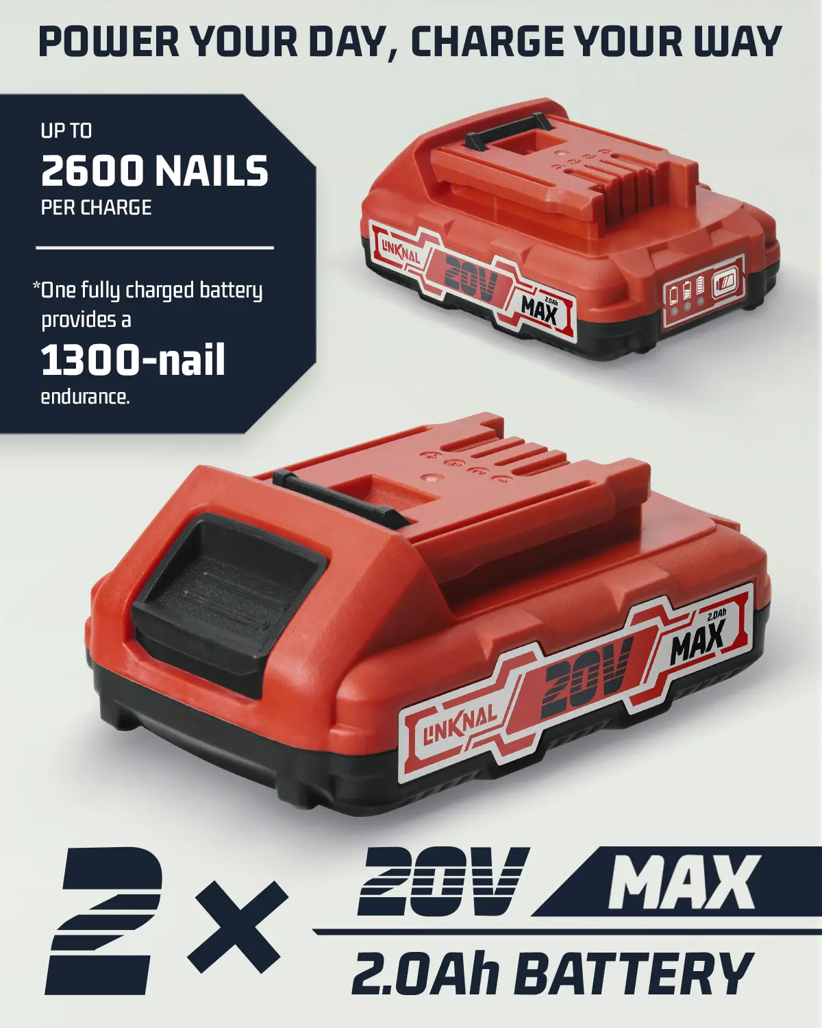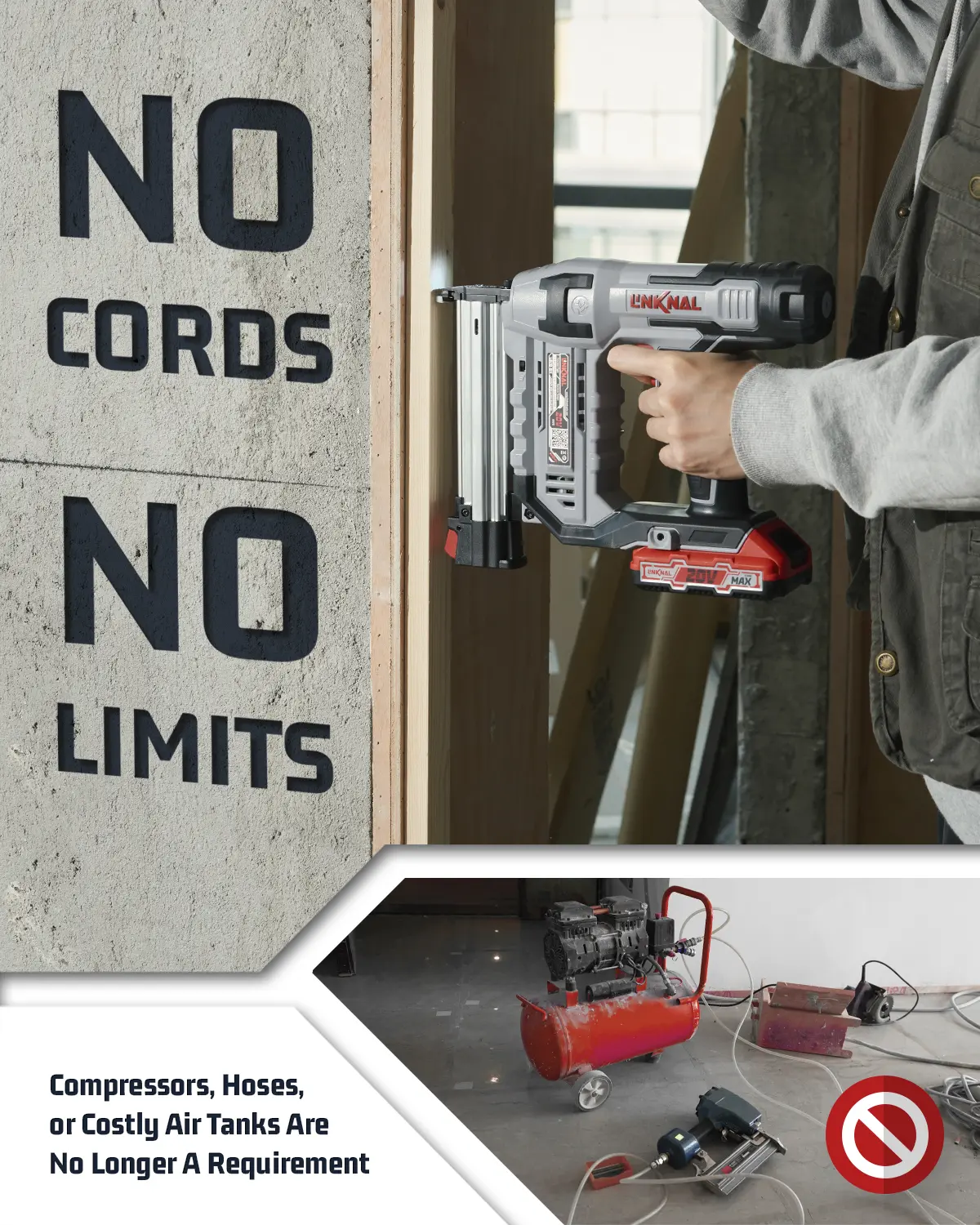 ·[Cordless Convenience] Say goodbye to compressors, hoses, or the need for costly gas cartridges with the LINKNAL cordless nail gun. Powered exclusively by batteries, it offers you the flexibility to work anywhere. Drives up to 1300 nails per charge.