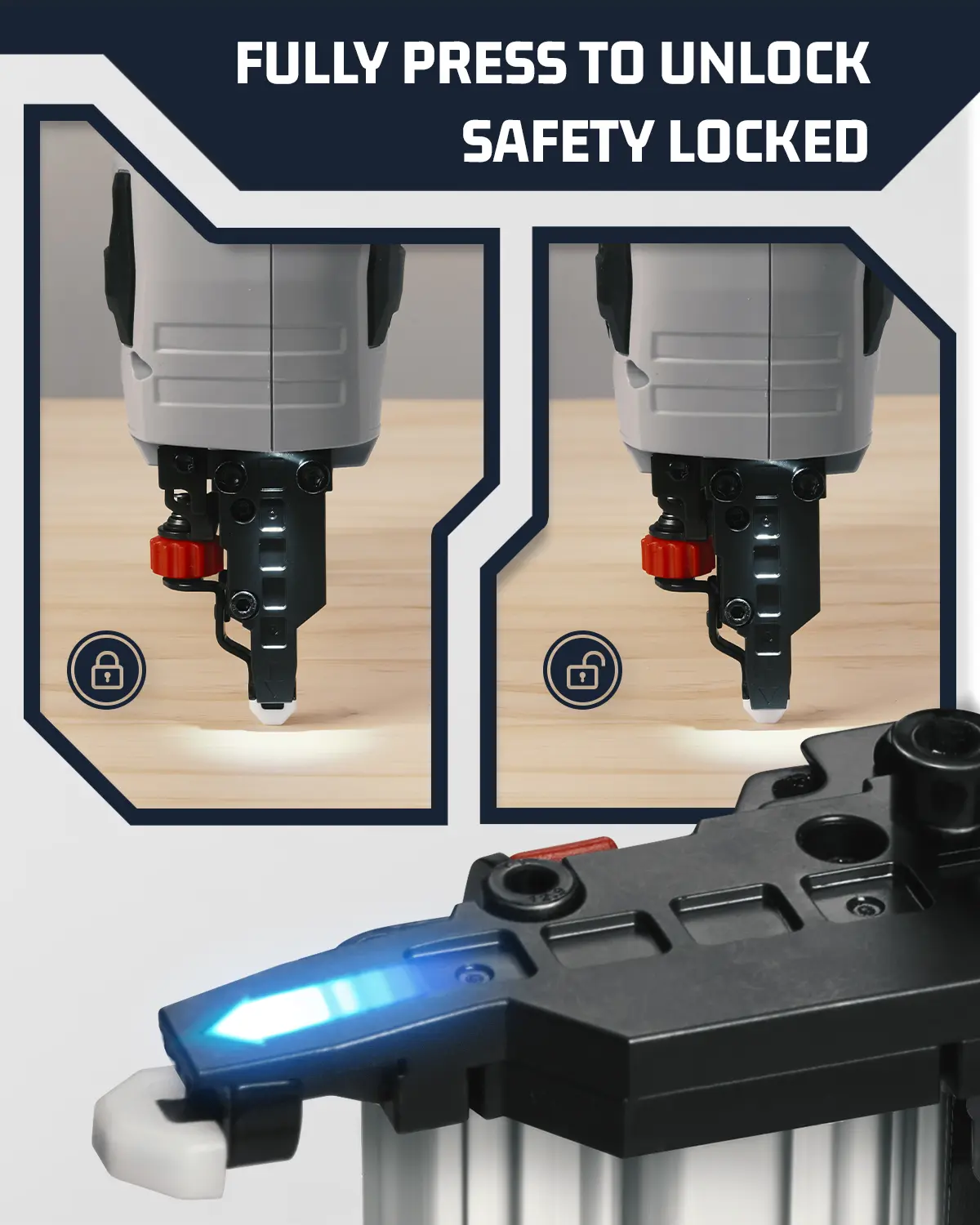 ·[Safety First] Nails can only be fired when the contact trip is fully depressed. This safety design is aimed at ensuring you have the utmost confidence and security in your work, eliminating any possibilities of accidental misfires.