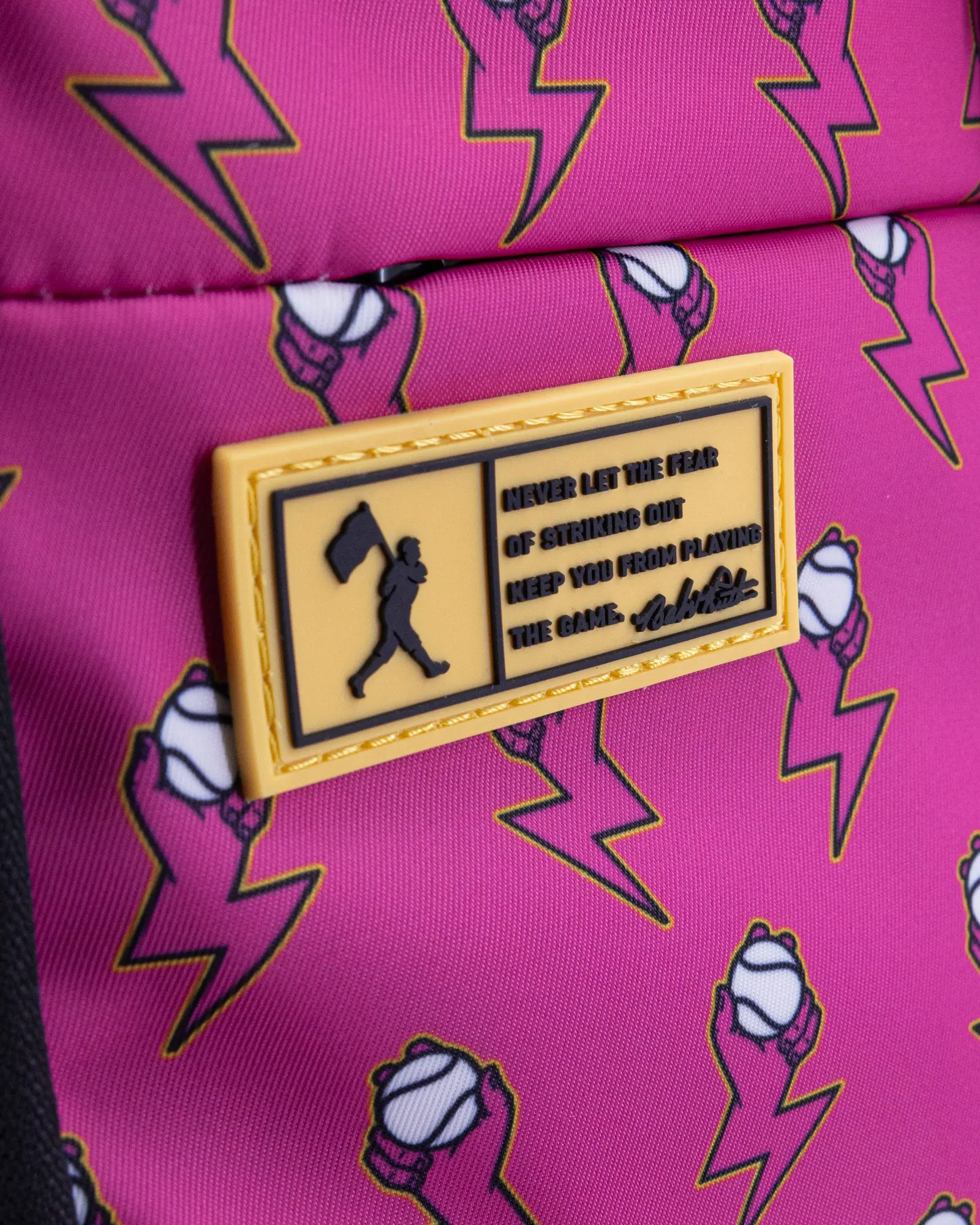 ·Canvas Clip for Cap or Glove: Conveniently attach your baseball cap or glove with the sturdy canvas clip, ensuring quick access and secure storage.Mesh Water Bottle Exterior Pockets: Stay hydrated with easy-to-reach mesh pockets that securely hold your water bottles, keeping you refreshed throughout the day.Alloy Zinc Electroplated Zippers: Experience smooth and durable zippers with an alloy zinc electroplating finish, adding a touch of sleekness to your backpack.Oxford Water Resistant Fabric: Protect your belongings from unexpected weather with our high-quality, water-resistant Oxford fabric, designed to withstand the elements.Padded Laptop Pocket: Safeguard your tech with the dedicated padded laptop pocket, providing extra cushioning for your devices.Suitcase Trolley: Effortlessly navigate through airports and stations with the built-in suitcase trolley, offering versatile travel convenience.Suitcase Handle: Carry your backpack like a suitcase when needed, thanks to the robust suitcase handle, perfect for quick transitions.Curved Ergonomic Padded Straps: Enjoy maximum comfort with ergonomically designed, curved padded straps that reduce strain and enhance your carrying experience.PVC Patch Featuring Babe Ruth Quote: Get inspired by the legendary Babe Ruth with a PVC patch featuring his iconic quote, "Never let the fear of striking out keep you from playing the game," reminding you to stay motivated and fearless.
