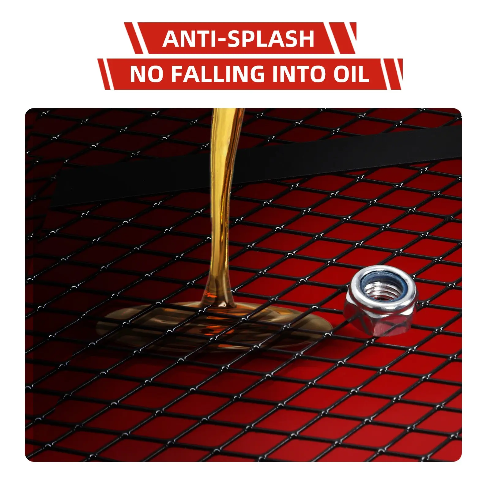 Smooth Transport and Mess-Free Oil Changes. Our drain pan is thoughtfully equipped with both rigid casters and locking swivel casters, providing effortless maneuverability. The anti-splash mesh grille adds an extra layer of protection, keeping your shop clean and safe by preventing oil splashes. Experience a hassle-free oil change by simply opening the car's oil valve and entrusting GARVEE's drain pan for a seamless and convenient oil change experience. Enjoy the convenience and peace of mind that comes with GARVEE's reliable and well-designed drain pan.