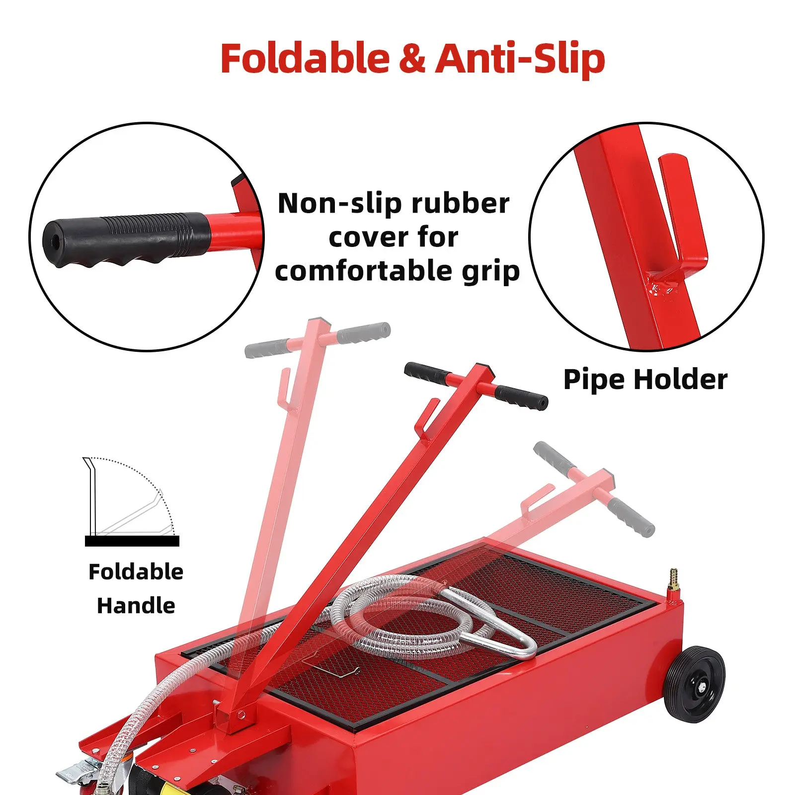 GARVEE's 20-Gallon Drain Pan. Designed with a large capacity, this drain pan can hold up to 20 gallons of oil, making it perfect for collecting waste motor oil, transmission fluids, brake fluids, and coolant. Its spacious design provides sufficient room to handle various fluids during maintenance tasks without the need for frequent emptying. Enjoy uninterrupted fluid collection and streamline your workflow with this high-capacity drain pan from GARVEE. Say goodbye to the hassle of constantly emptying smaller pans and experience the convenience of efficient waste fluids collection.