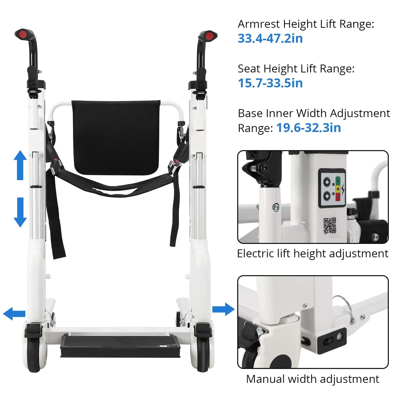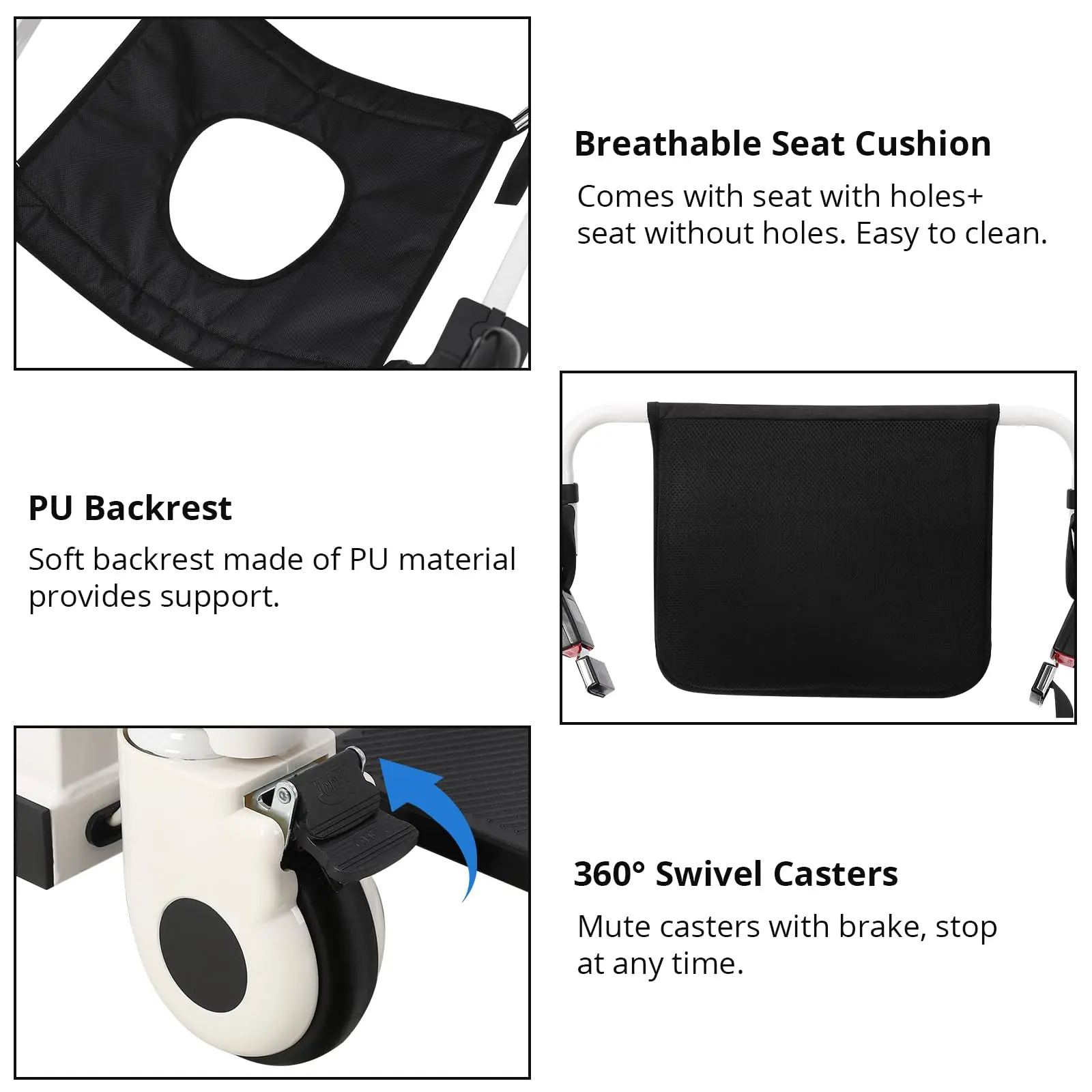 UPGRADE-ELECTRIC OF MIND: Electrically controlled, heavy-duty steel, 330lbs capacity. High-strength carbon steel, waterproof & corrosion-resistant. SUITABLE FOR NEEDS: Toilet wheelchairs with 2 cushion types, quality materials, reliable, super load-bearing. FREELY ADJUSTABLE: Hydraulic lift, height 17.32-27.5 inch, reduces waist damage, easy for one person. SAFE TRANSFERS: 180° split seat, silent casters with lock, safe for immobile patients. MULTIFUNCTIONAL: 4-in-1, for home care, travel, various places, tool-free disassembly.