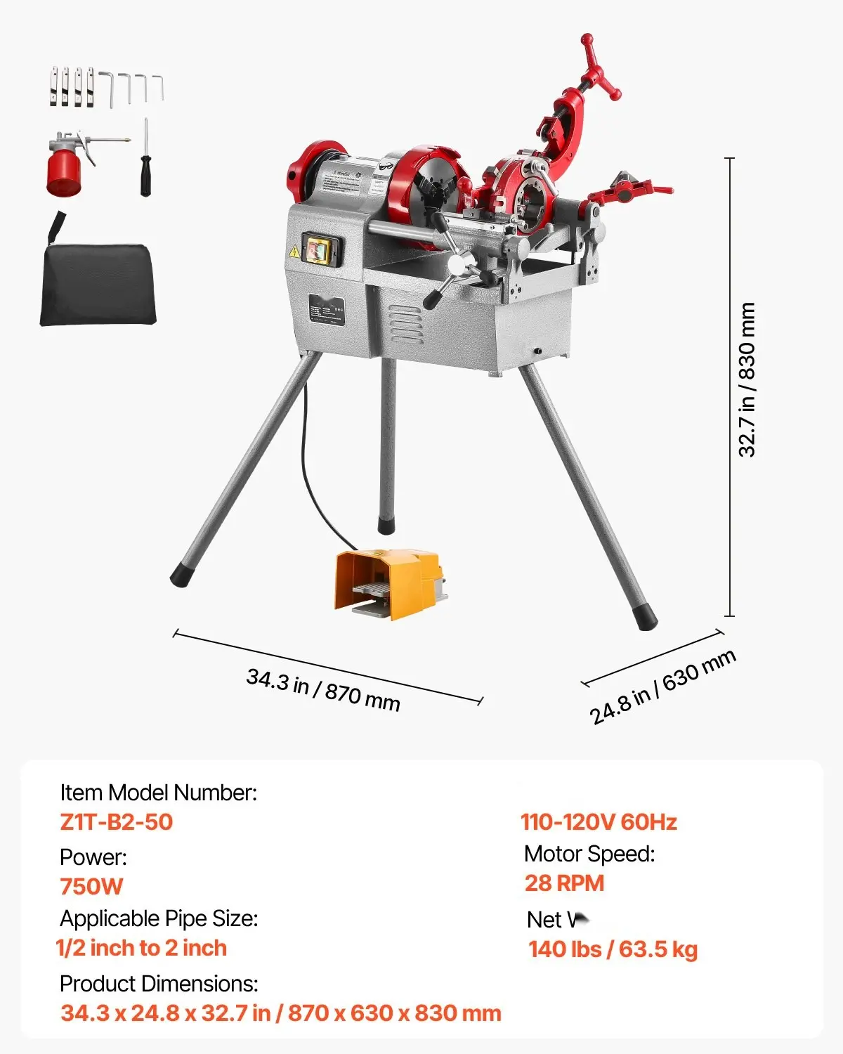 ·Powerful Motor: Featuring a 750W high-power motor, this pipe threader machine delivers strong performance for efficient and stable operation. With a stable speed of 28 RPM, it is ideal for a variety of pipe cutting and processing tasks, ensuring high-quality results.