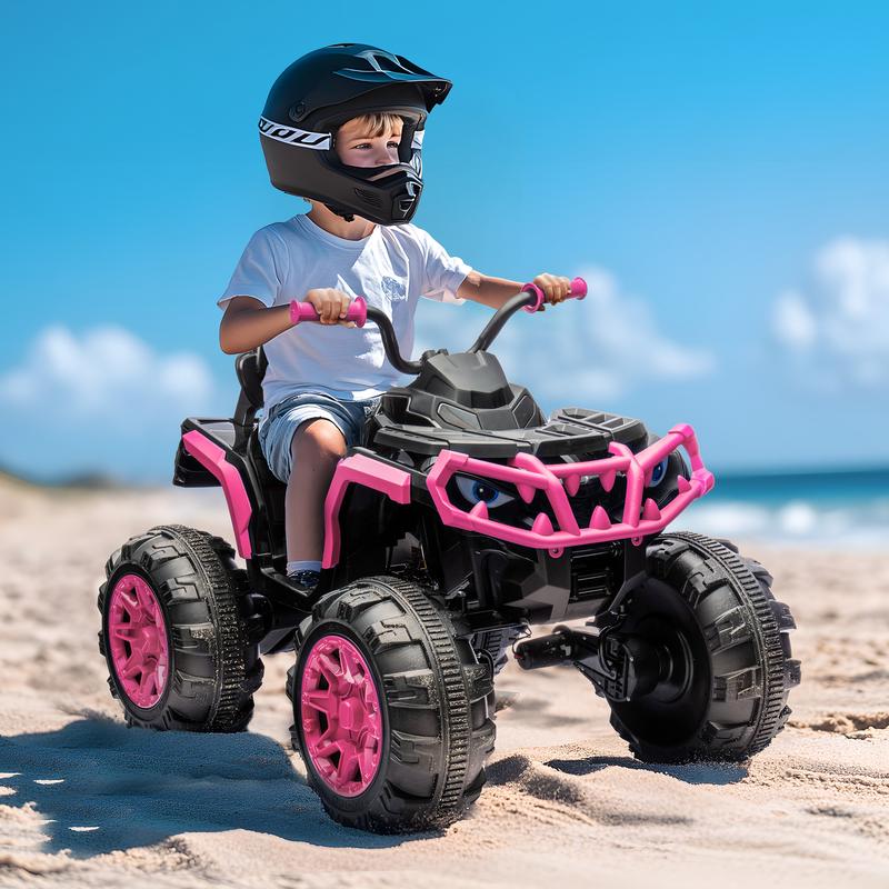 ยท14.4" LARGE TIRES: With large tires and a high ground clearance, this kids 24v ride on atv is built to handle a variety of terrains, from grass and sand to mud with ease.