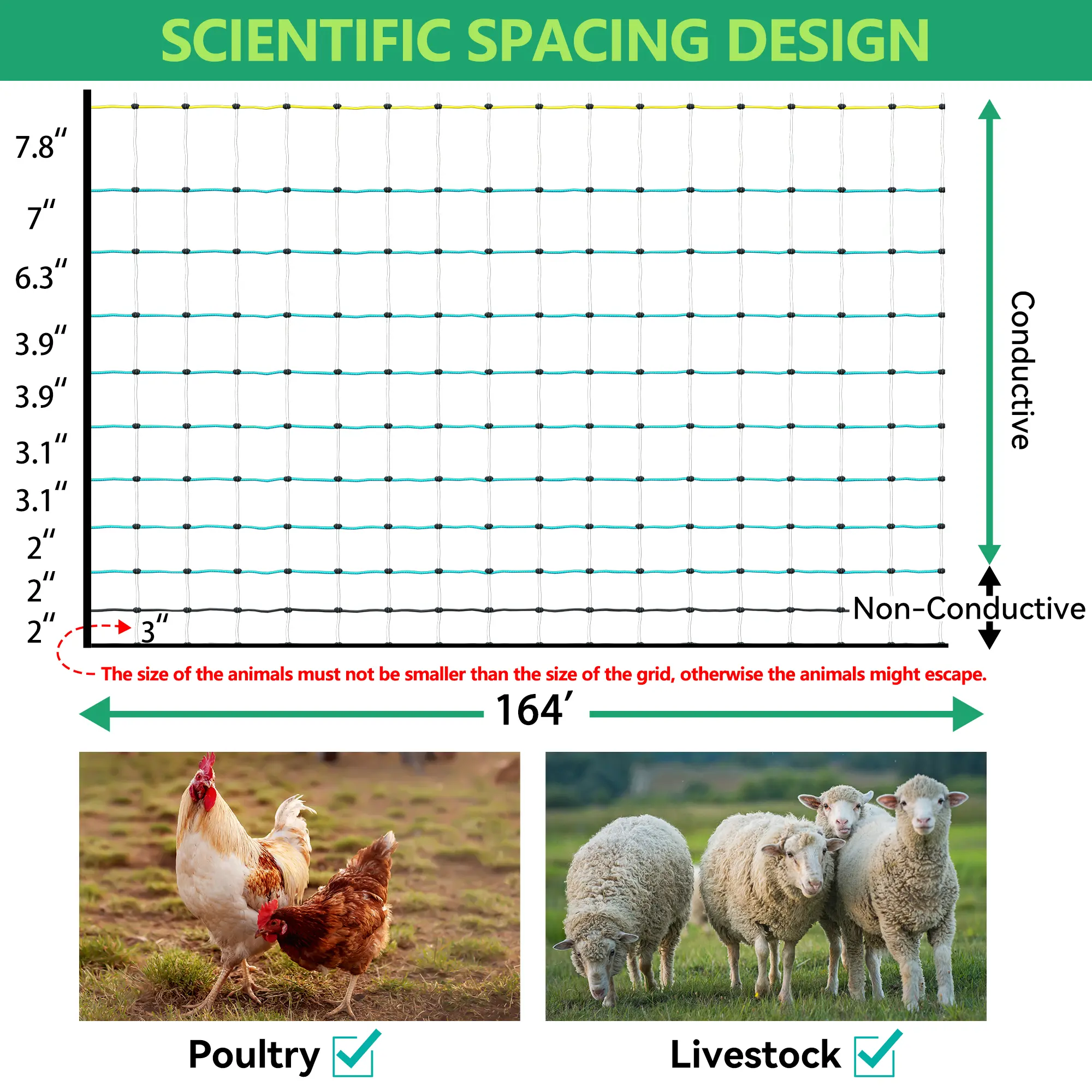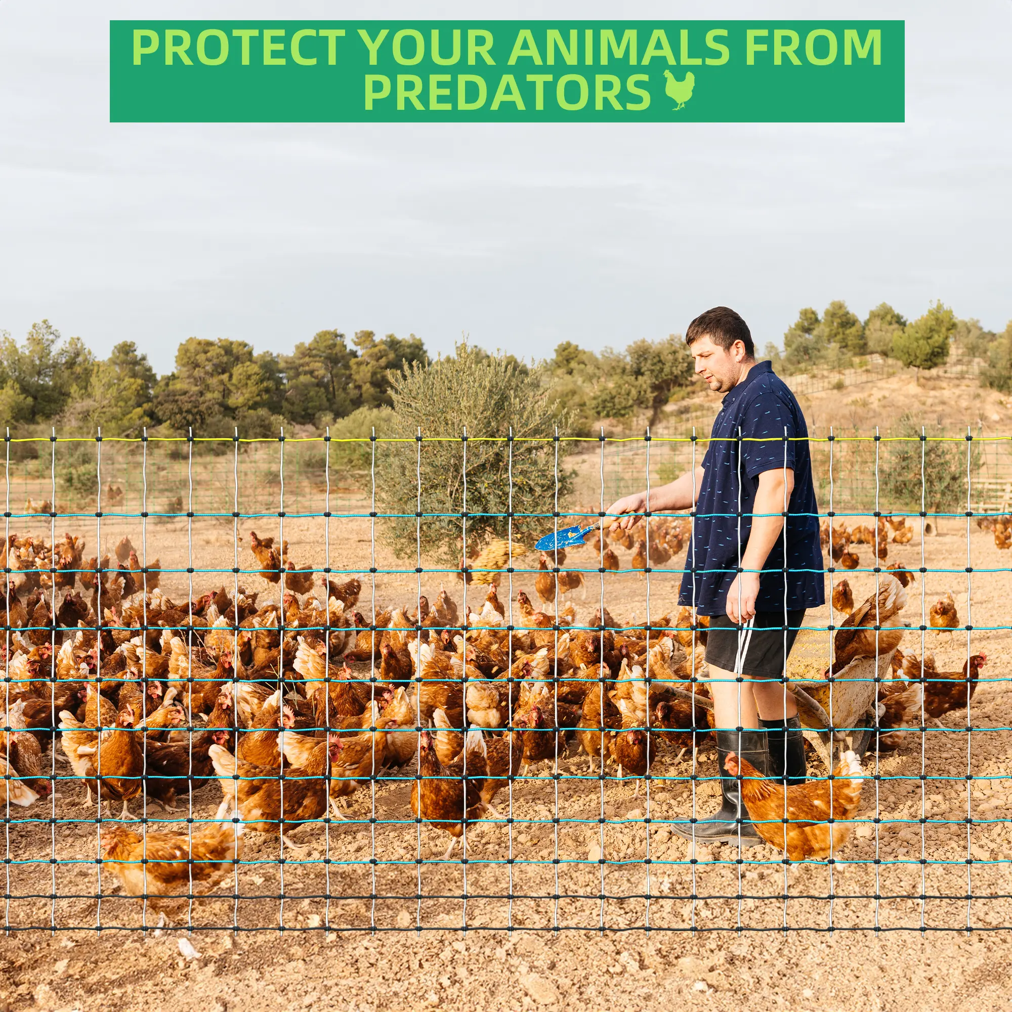 ·Predator Deterrence: Our electric poultry netting forms a strong barrier to protect your livestock from threats like mink, raccoons, foxes, coyotes, and skunks, giving you and your poultry peace of mind.