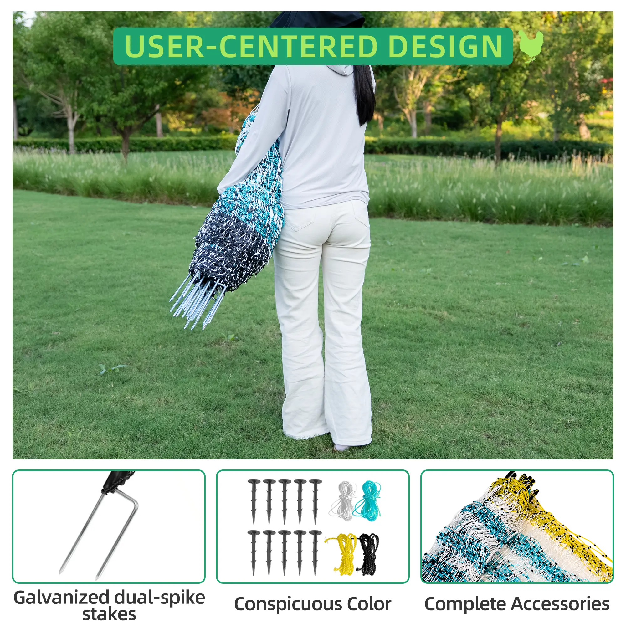 ·Easy to Move: Featuring double-spiked steel stakes for stability on various terrains, the electric poultry net can be easily relocated for temporary grazing or crop protection without a permanent setup.