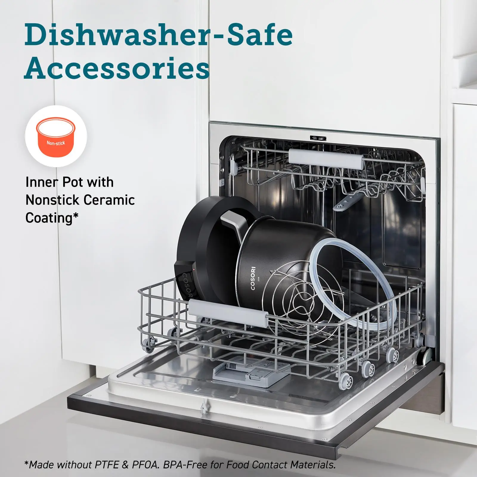 Easy to Clean: Stainless steel, fingerprint-resistant housing with a widened pot gap; the lid, inner pot, and accessories are all dishwasher-safe