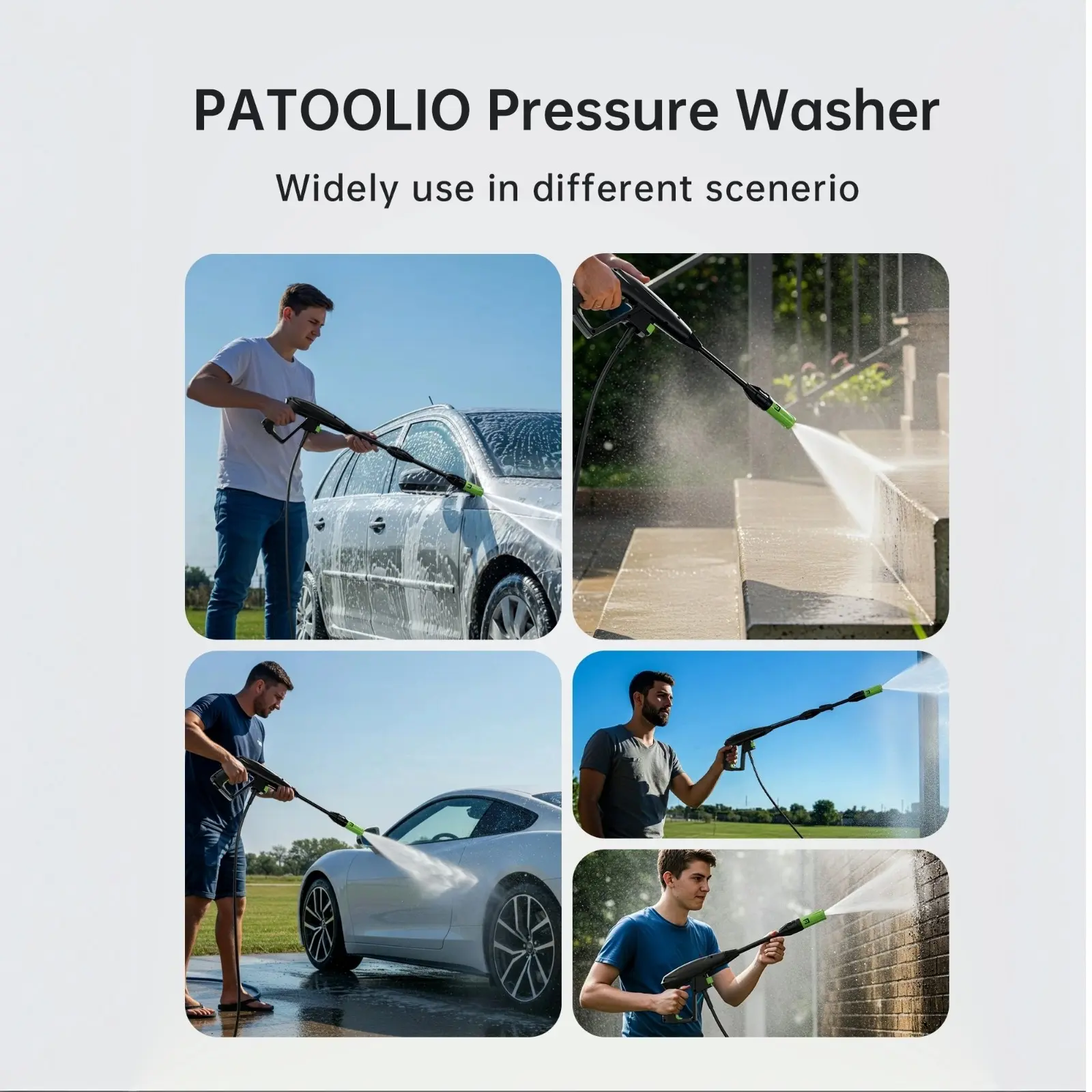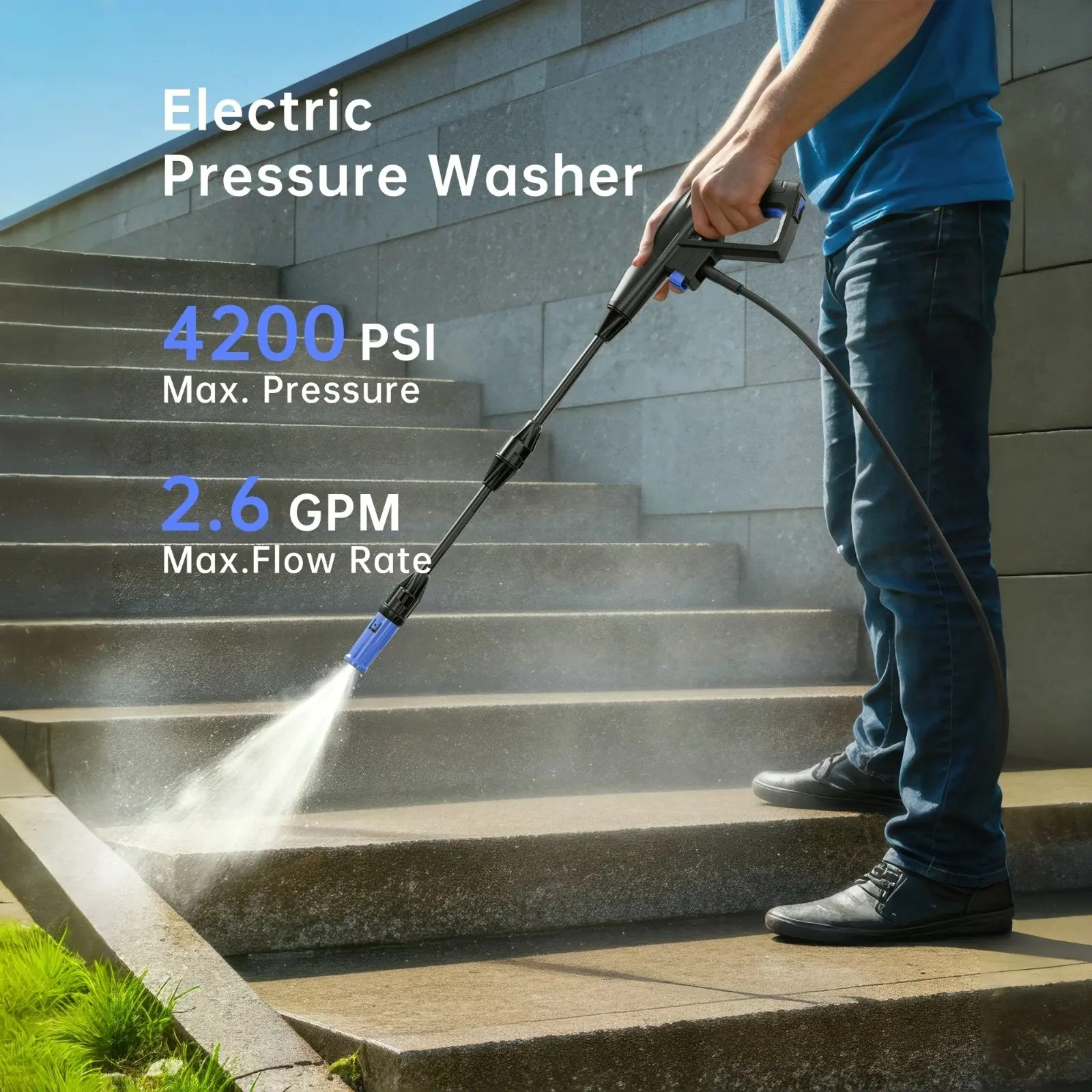 ·Pressure Washer: This 4200PSI Electric Pressure Washer with Foam Cannon offers efficient cleaning. It avoids the laborious work mode of traditional tools, making it ideal for cleaning concrete, pavements, driveways, patios, decks, walkways, cars, boats, homes, fences, and furniture. 🏡🚗