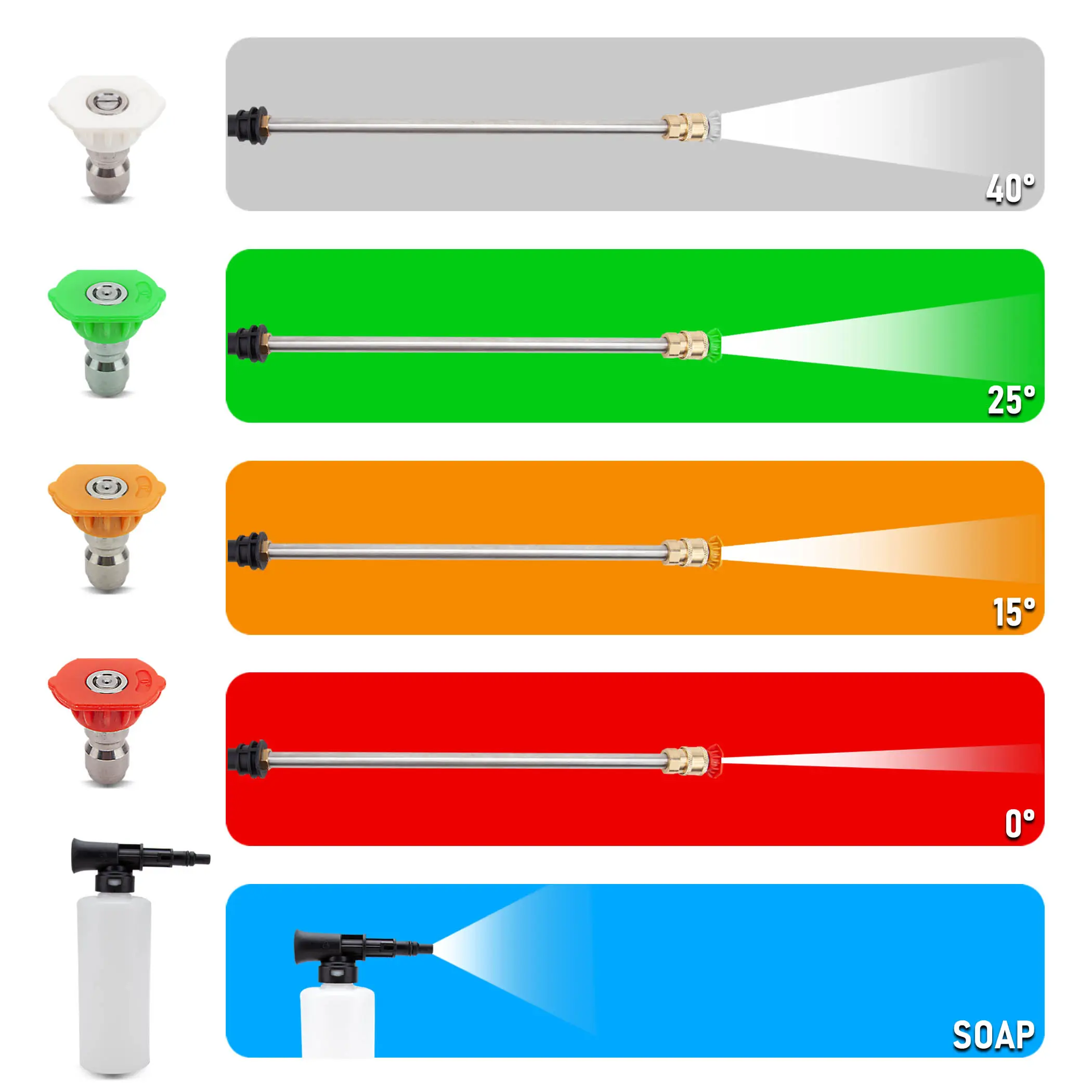 ·Versatile Cleaning Options: The washer comes with multiple nozzles, including an adjustable nozzle, a rotating nozzle, and a foam nozzle, allowing you to customize the water flow to suit different cleaning tasks. Additionally, it features a large capacity water tank and an efficient filter to ensure clean and clear water flow.