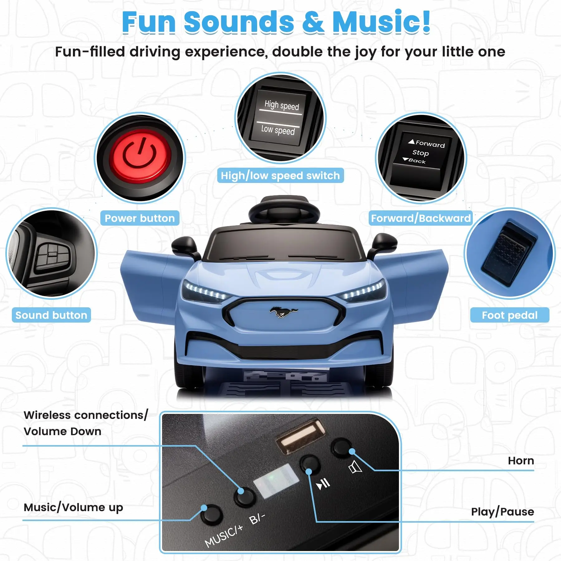 ·Safe & Secure Toddler Car Design: Safety is our priority. This toddler car comes with an adjustable safety harness and a sturdy frame. As a dedicated ride on car for young children, it safely supports kids up to 66 lbs.